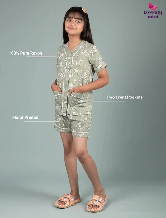 Relaxed Fit Floral Kids Girls Night Dress Shorts with Shirt (Multi-Color)