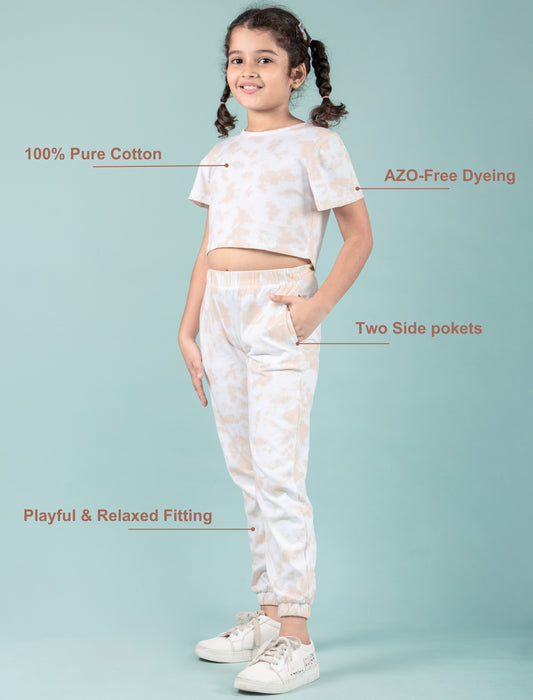 Pure Cotton Tie-Dye Joggers Girls Kids Co-ord Set (Beige)