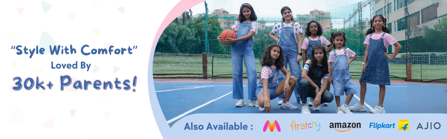 Our denim dungaree for girls collection is a must-have for fun-loving kids. Available in full-length and pinafore styles, these dungarees offer flexibility and fashion in one. Pair them with soft cotton tees or crop tops for a cute, casual vibe.