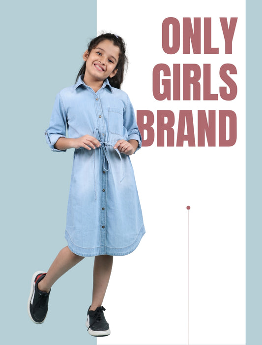 Denim Shirt Dress for Girls: A modern classic with belts or button-down details — ideal for school events and outings.