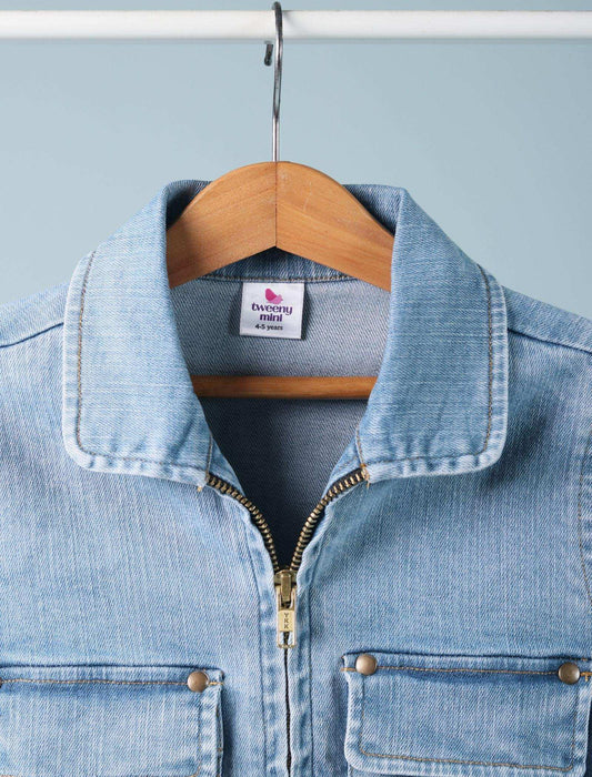 Discover the full denims for girls collection online at Tweeny Mini. From adorable dresses and skirts to stylish jackets and dungarees, each piece is made to complement your child’s personality and lifestyle.