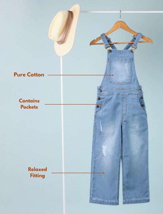 Relaxed Denim Dungaree for Girls Kids (Light Blue)