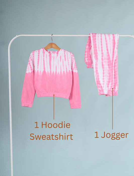 Trendy Tie Dye Girls Kids Winter Joggers Co-ord Set (Rose Pink)