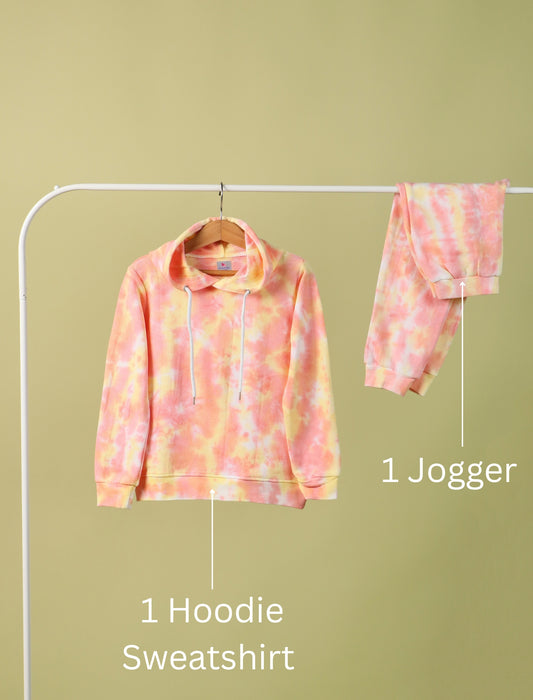 Kids Tie Dye Hoodie for Girls with Jogger Pant (Peach)