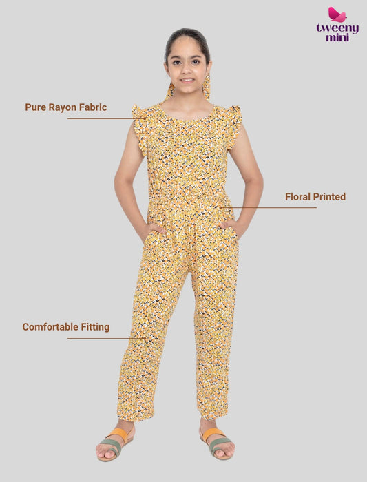 Summer Floral Jumpsuit for Girls Kids (Yellow)