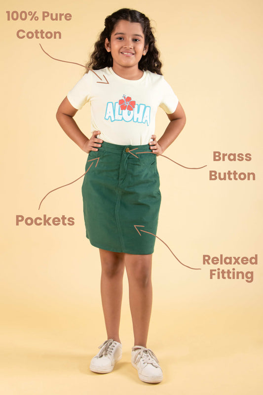 Stylish A-Line Corduroy Skirt for Kids Girls (Green)
