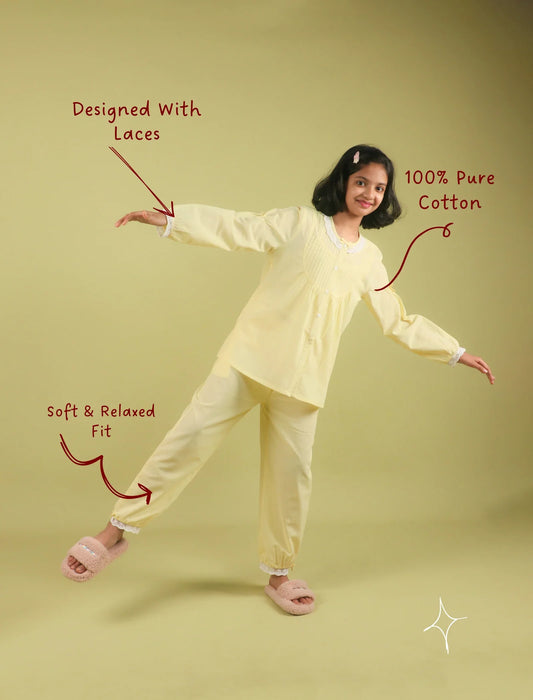Fairy Floss Nightwear For Kids Girls With Inner Camisole (Pastel Yellow)