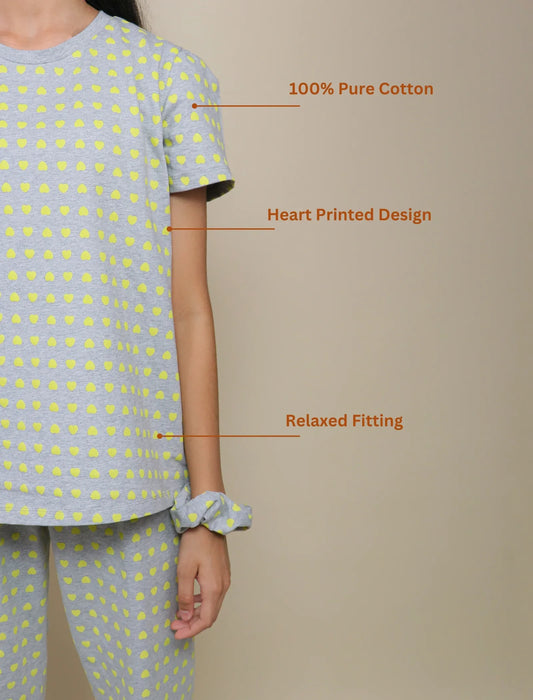 Sunshine Hearts Printed Cotton Night Suit for Girls