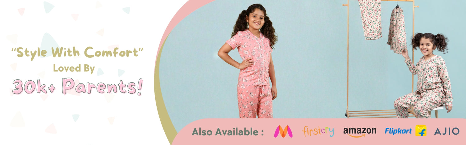 Every child enjoys bedtime more when their sleepwear for girls is playful and colorful. Our floral night suit collection features prints and designs that appeal to all ages: