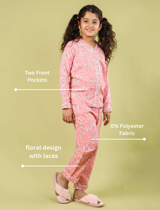 Floral Night Suit for Girls & Kids – Premium Sleepwear Pajama Set