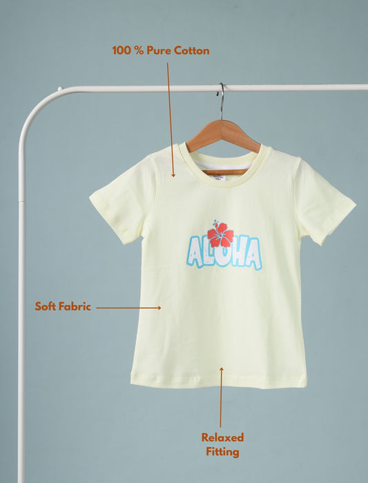 Summer Pure Cotton Graphic Tees for Kids Girls (Lemon Yellow)