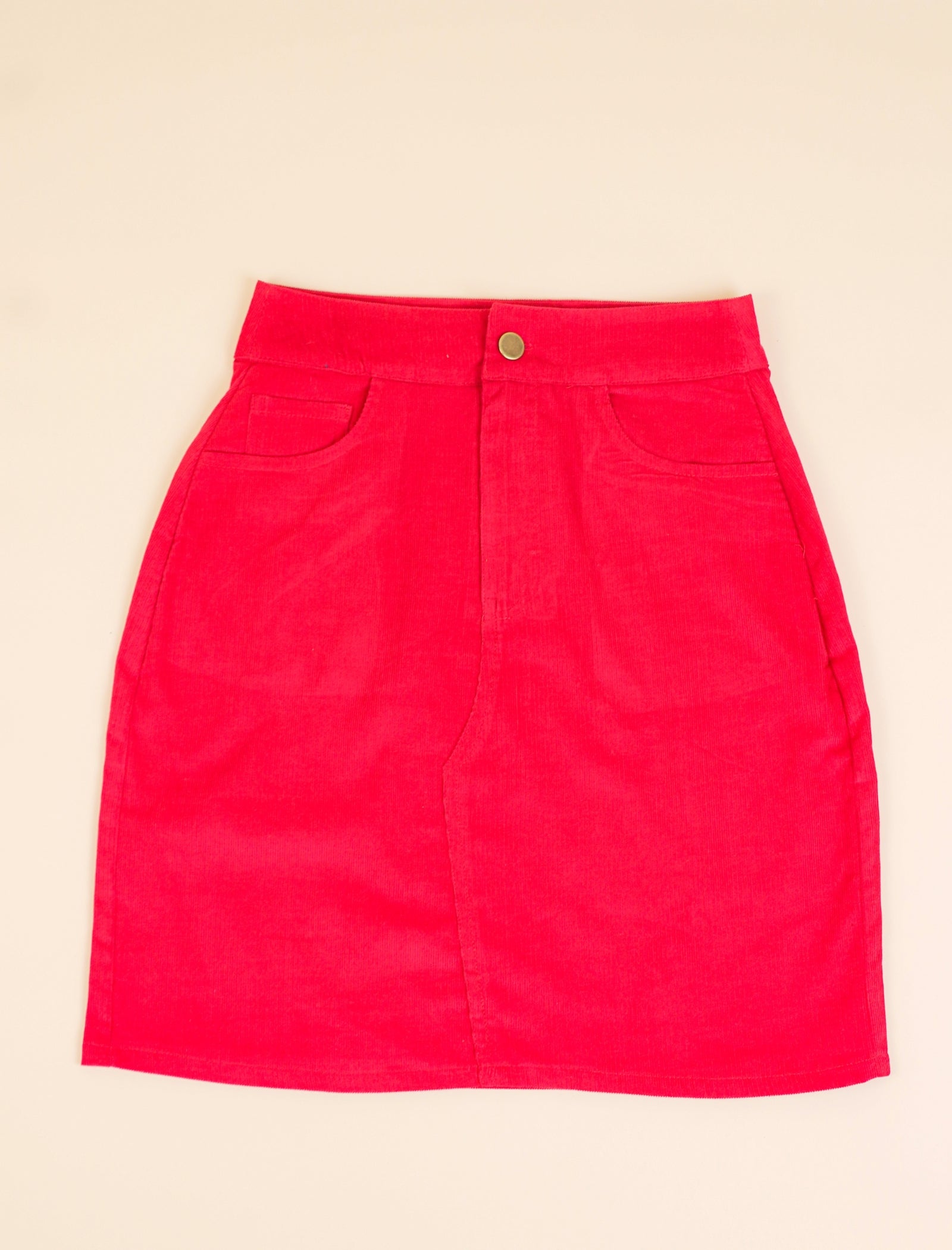 Pure Cotton Corduroy A-Line Skirt for Girls Kids (Red)