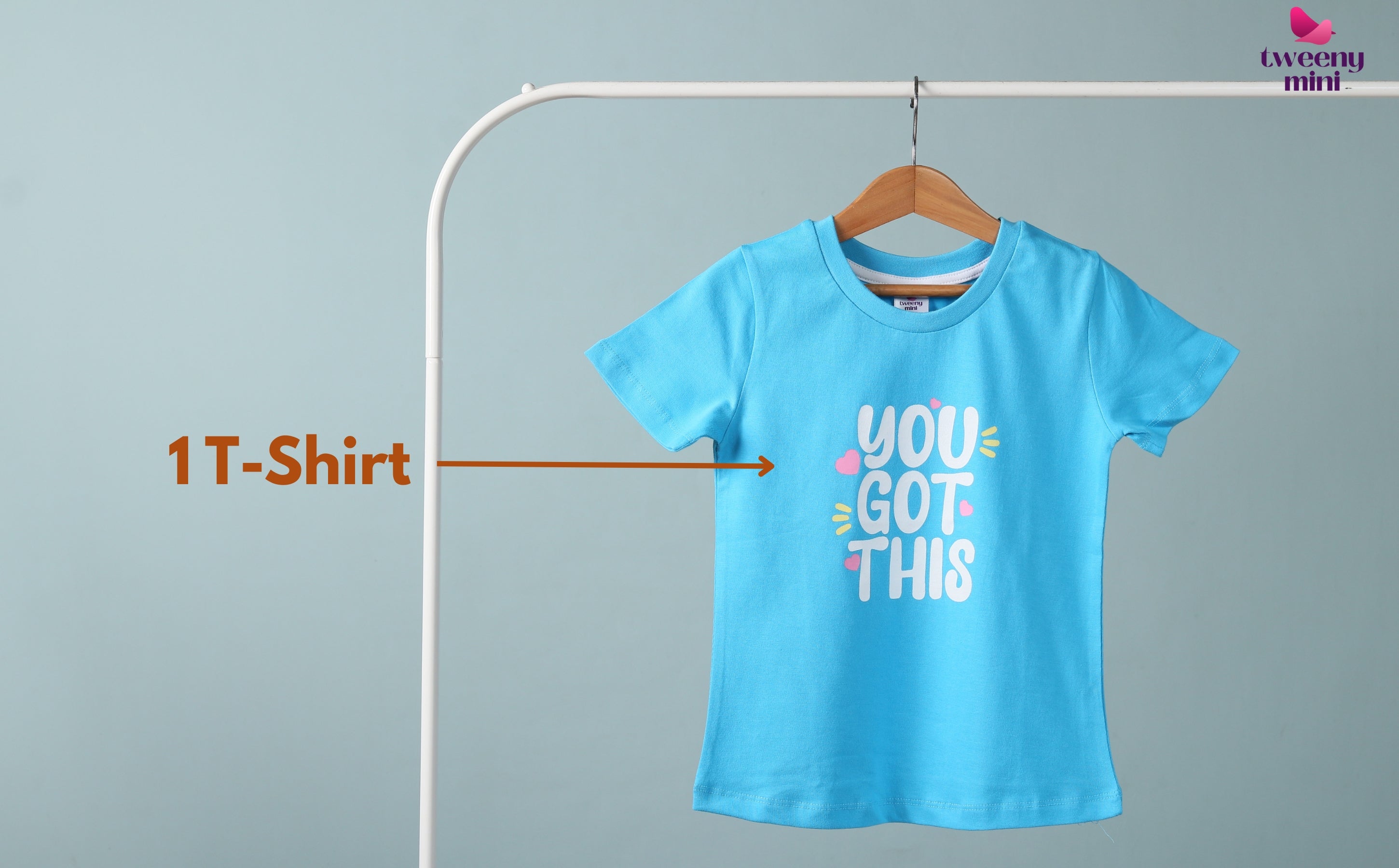 This aqua-blue cotton tee is more than just a piece of clothing—it’s a blend of comfort, color, and creativity designed for girls who love to explore their world freely. The softness of the cotton, the thoughtful graphic design, and the summer-friendly feel make it a powerful wardrobe essential.