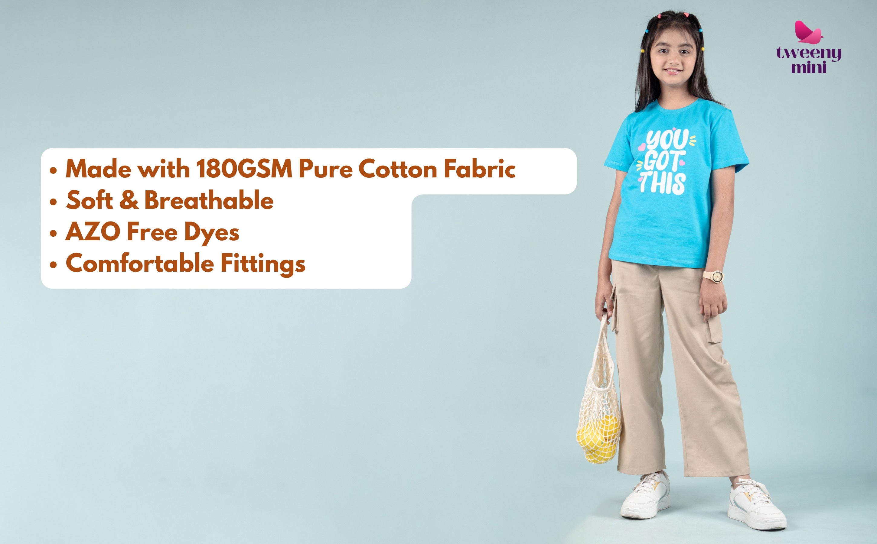 Pure Cotton Graphic Tees for Girls – Aqua Blue | Soft, Breathable & Summer-Perfect