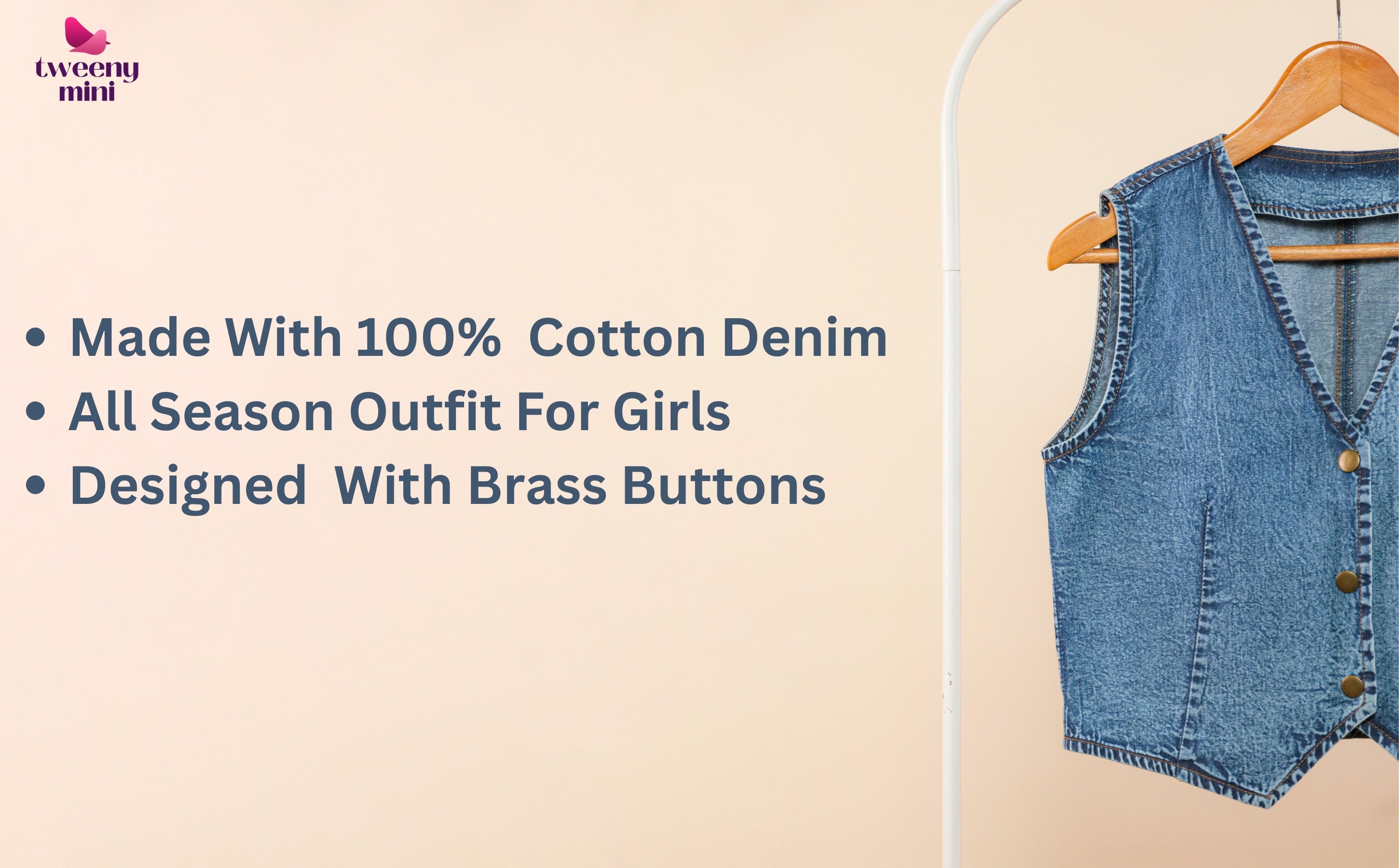 These care steps help preserve the structure, colour, and softness of the cotton denim waistcoat for girls over time.