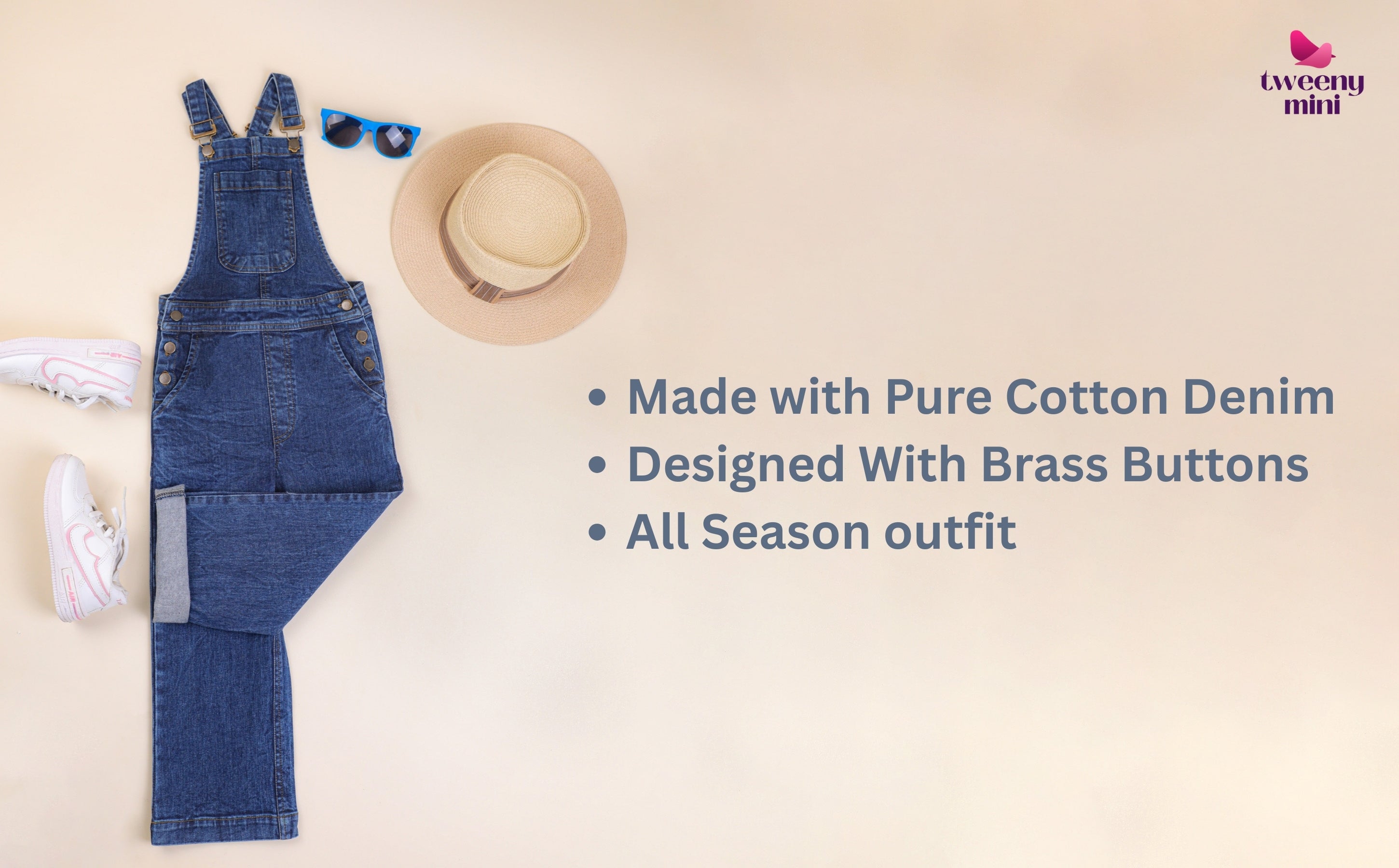 Premium Denim Dungarees for Girls Kids (Classic Blue)