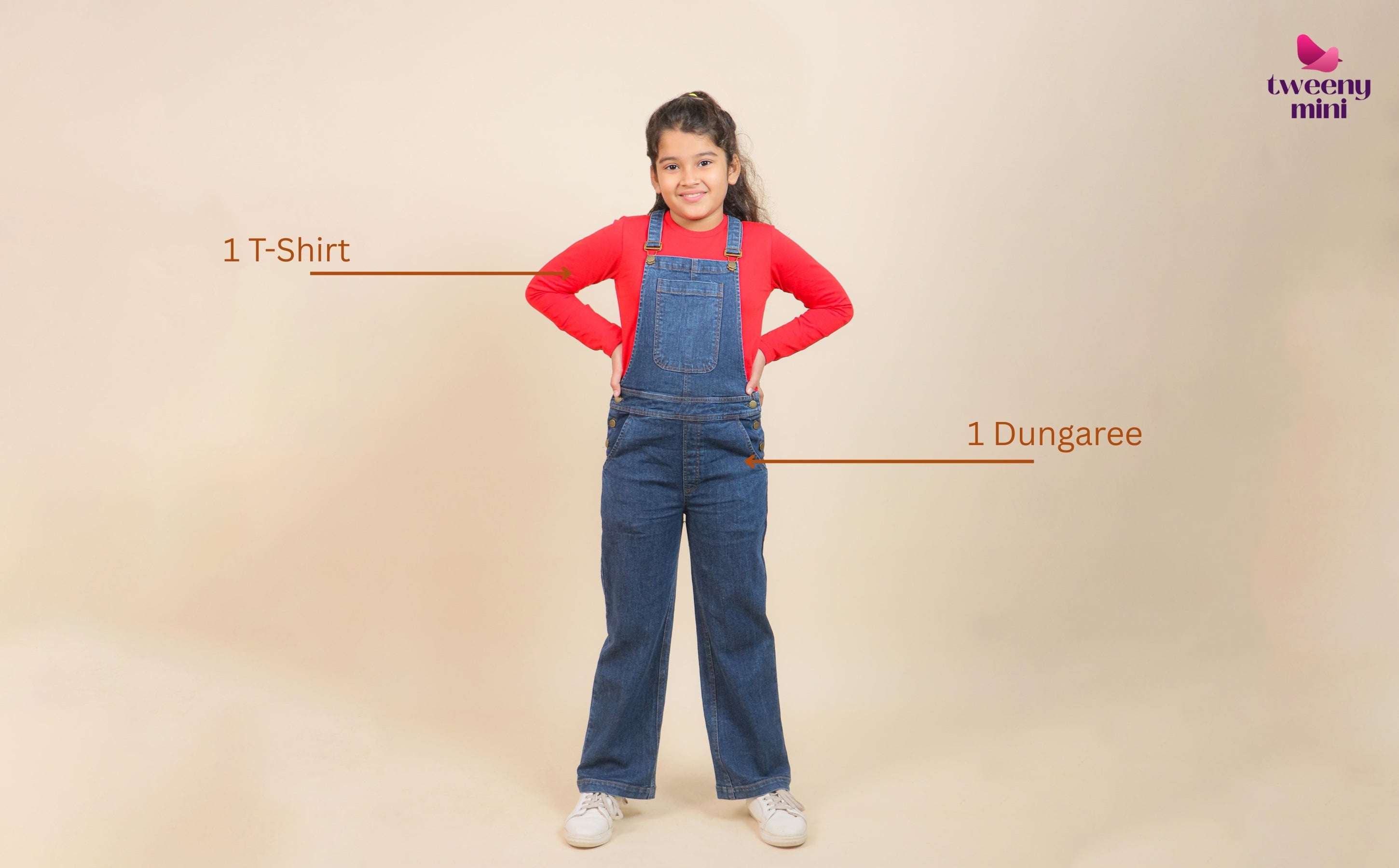 Together, the dungaree and T-shirt create a balanced dungaree with t shirt set for girls that works comfortably across seasons.