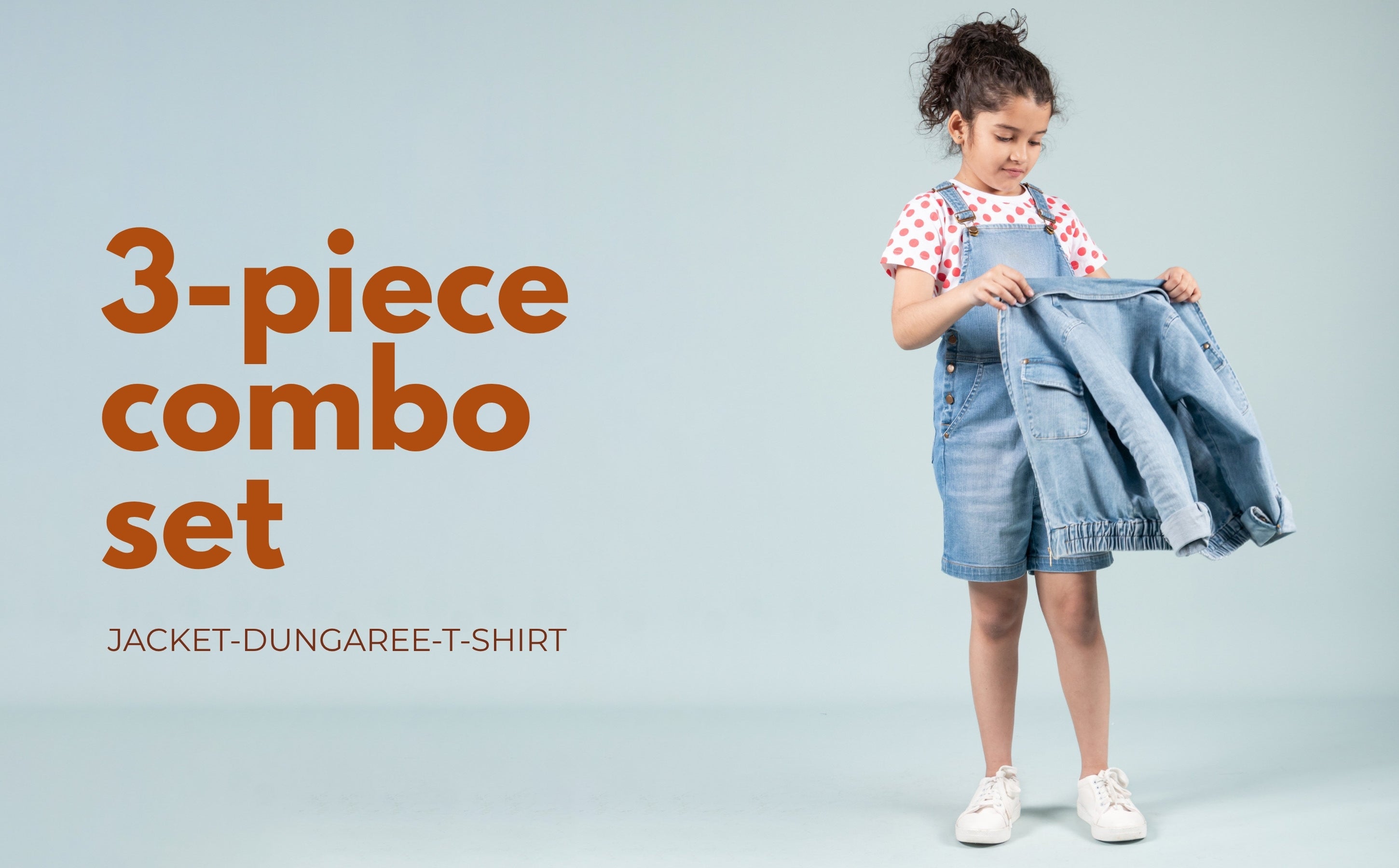 If you want an outfit that blends durability, modern style, and child-friendly comfort, this set is the perfect choice. The denim jacket adds charm to every outfit, the dungaree offers playful flexibility, and the soft T-shirt brings all-day comfort.