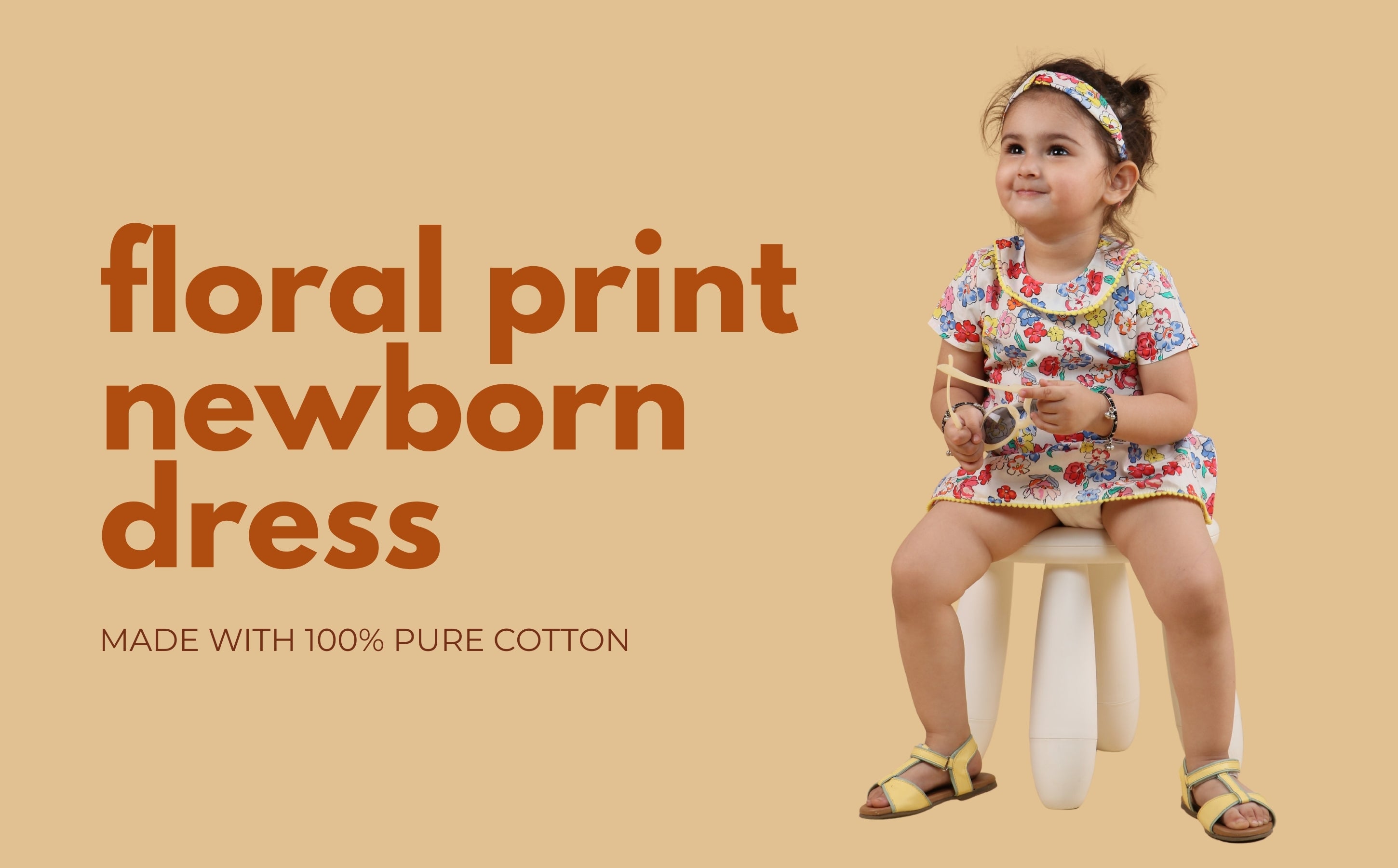 Welcoming a newborn into the world means surrounding her with love, warmth, and the softest clothing possible. This new born baby dress is crafted to give your little girl the comfort she deserves and the delightful charm every parent loves. Designed with a vibrant floral print and made from 100% breathable cotton, this adorable outfit brings together beauty, practicality, and baby-safe fabric—all in one lovingly created ensemble.