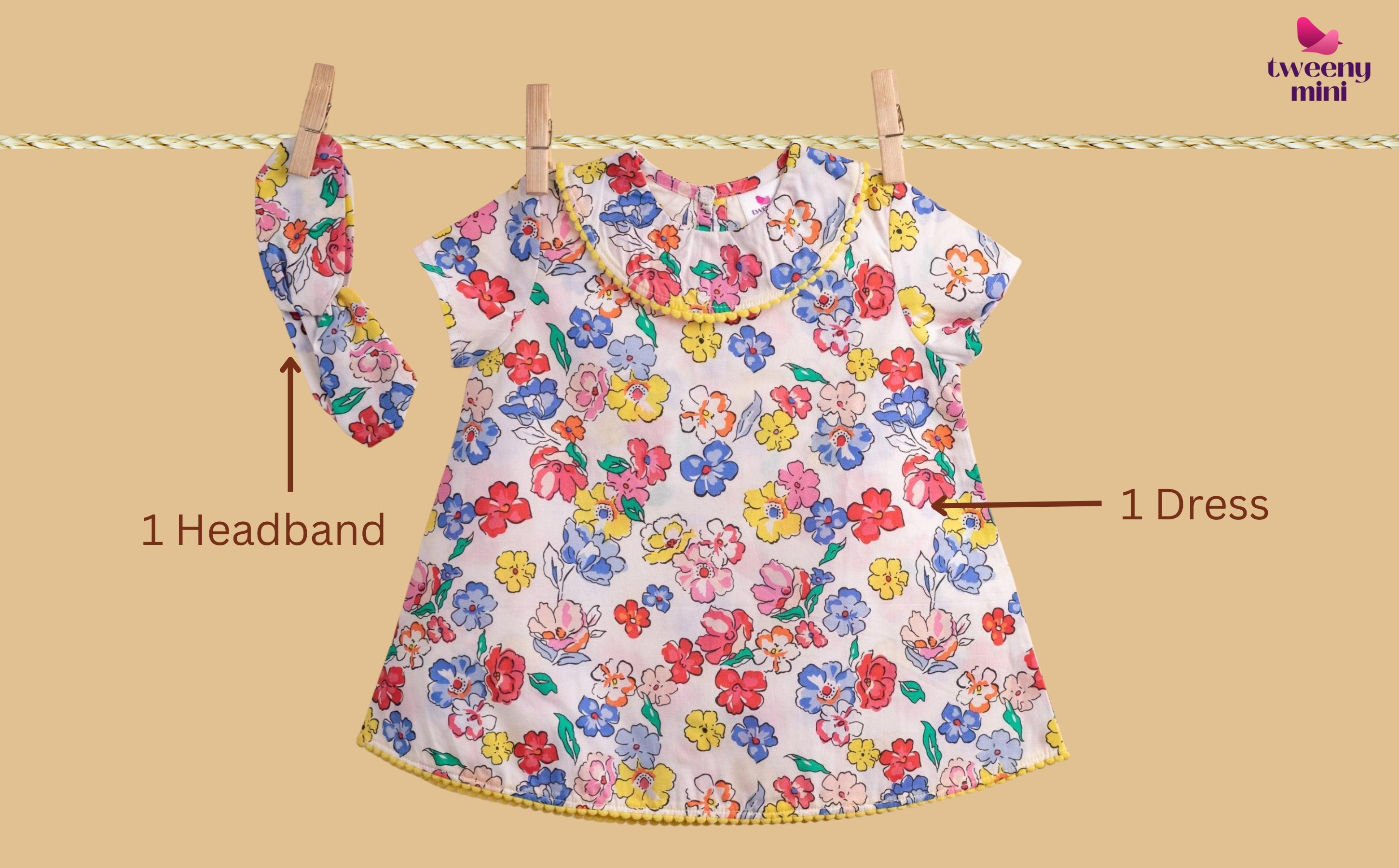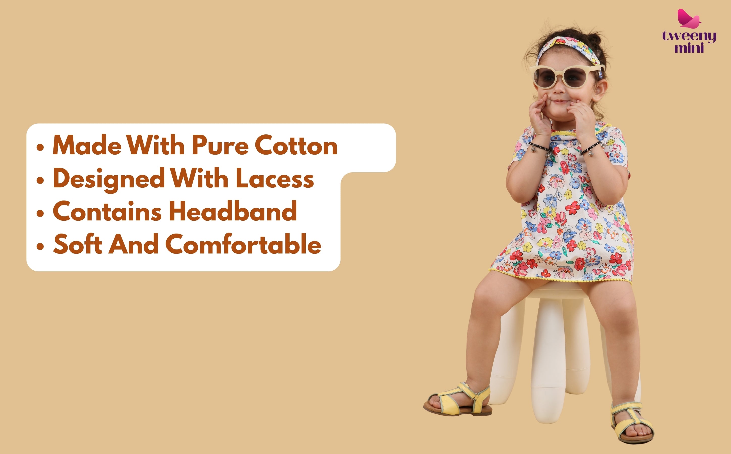 Premium Floral New Born Baby Dress with Matching Headband – Pure Cotton Comfort for Little Girls