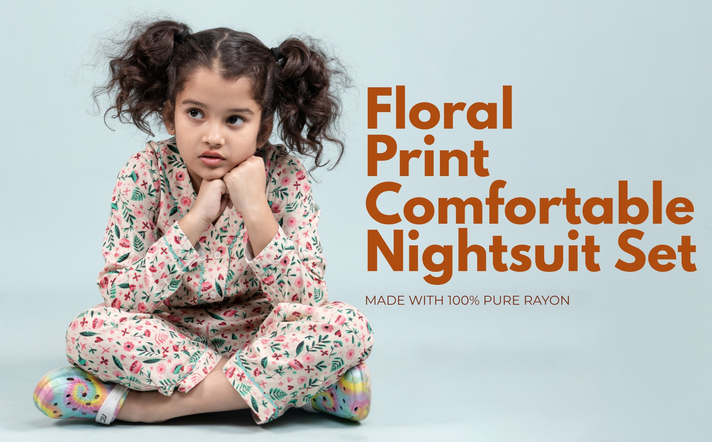 Our floral night suit for girls is made to make bedtime more comfortable and cheerful.