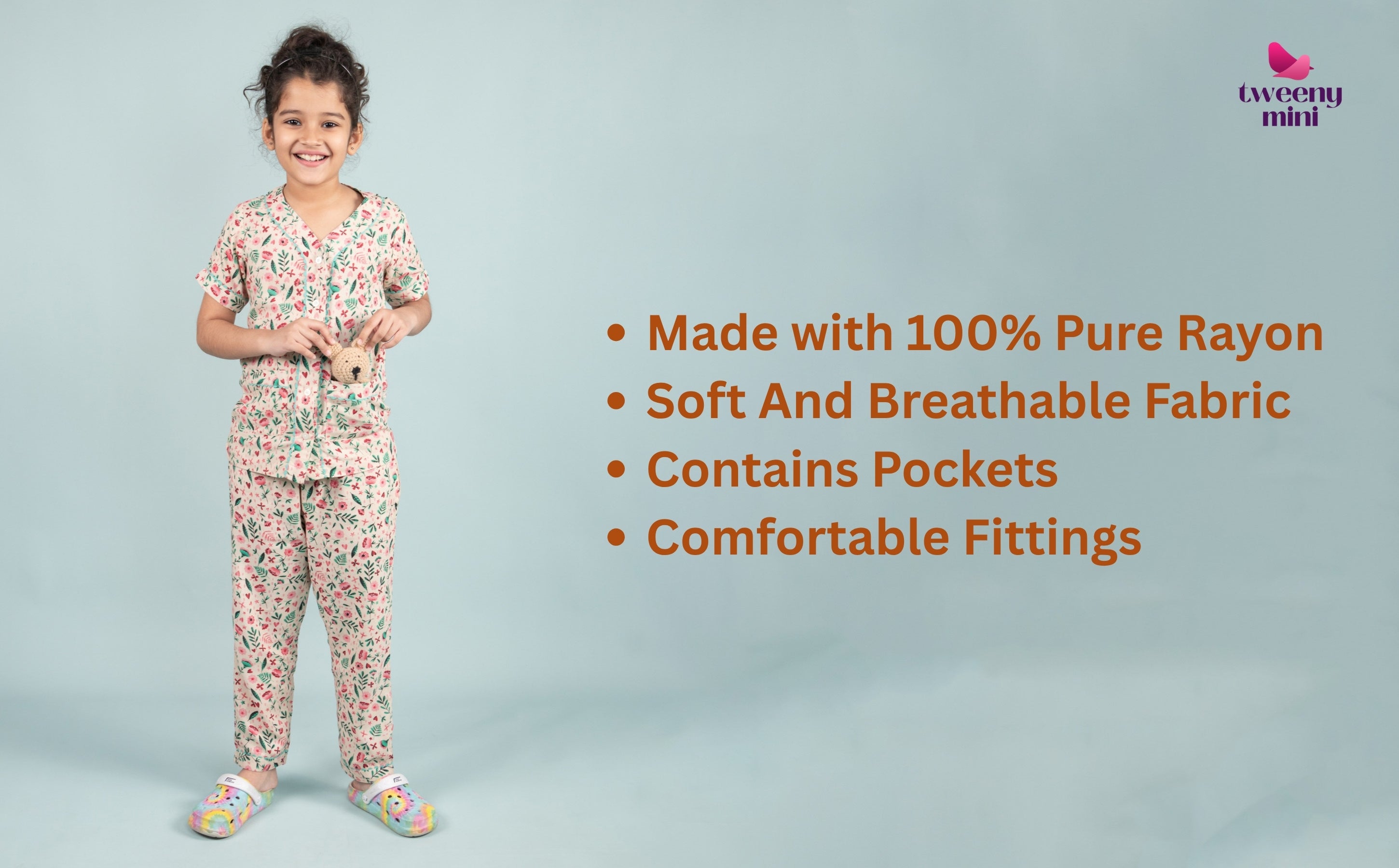 Definitely! The floral print makes it a charming printed floral night suit for girls — loved by parents and children.