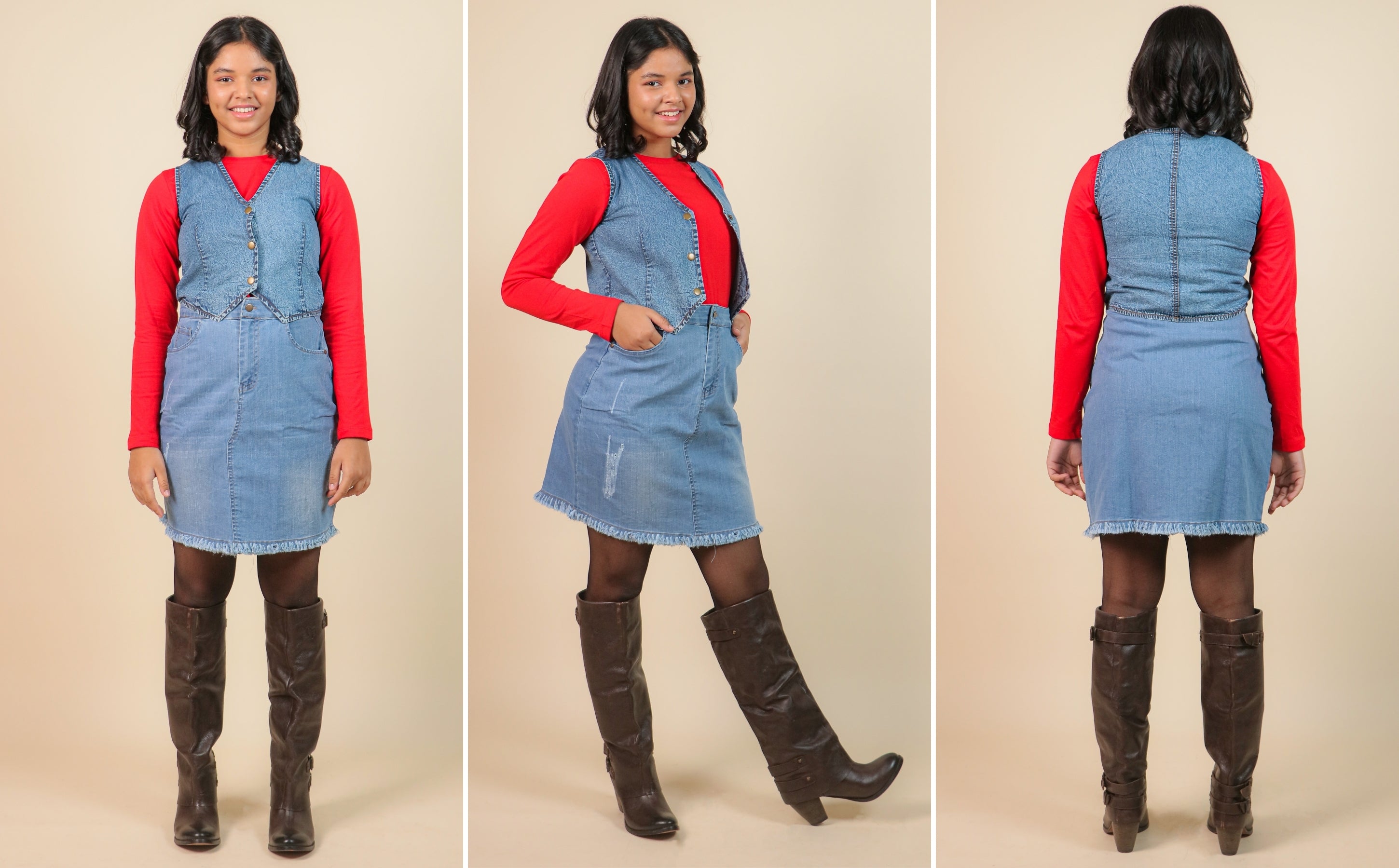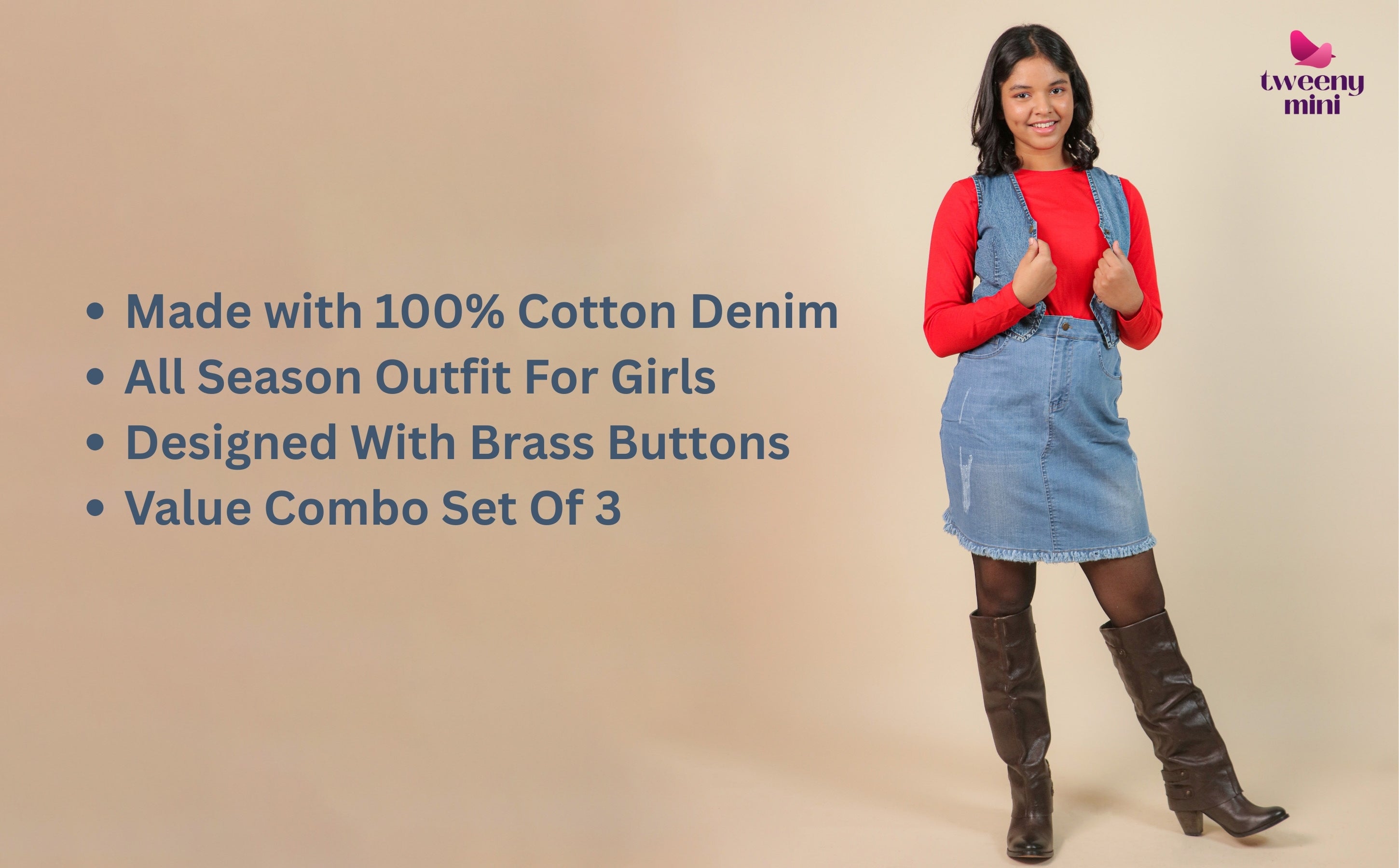 The Denim Dreams Waistcoat, Skirt & T-Shirt Combo Set is designed to support everyday life while offering timeless style. This winter co-ord set brings together comfort, structure, and versatility in one thoughtfully designed outfit.