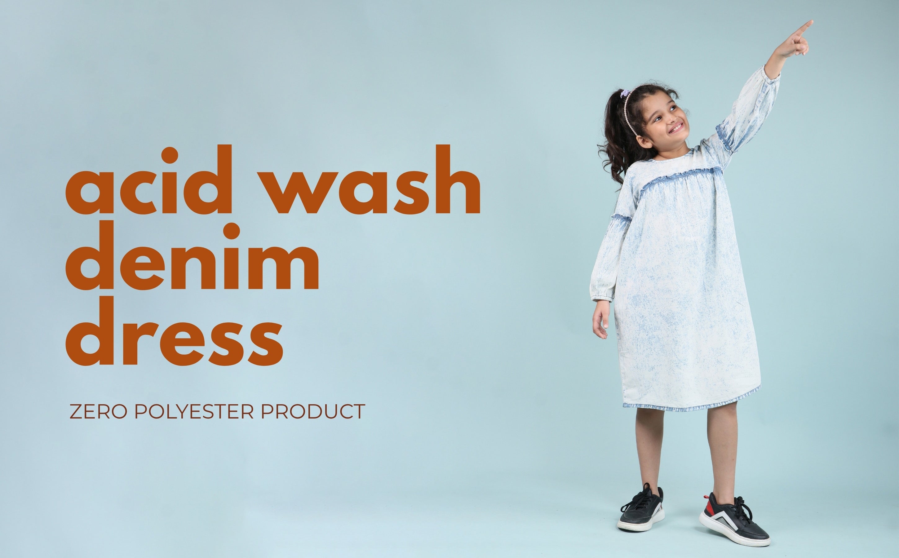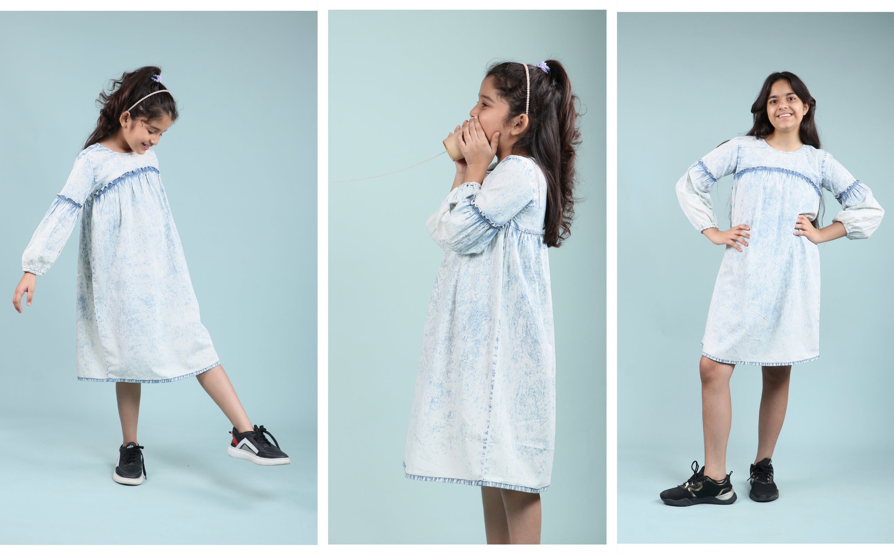Add a timeless style to your child’s wardrobe with our acid wash denim dress. This versatile light blue denim dress kids is a stylish blend of modern wash effects and all-season comfort. The outfit combines charm, structure, and softness for growing girls who love style and freedom.