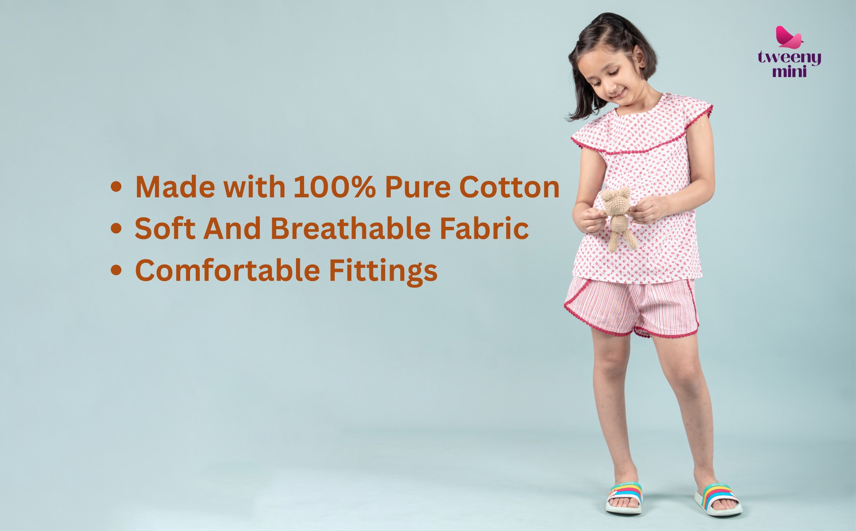 Though designed as a pure cotton kids nightdress, it works just as well for lounging around the house. It’s ideal for mornings, weekend naps, or cozy movie nights. This nightsuit moves effortlessly between sleepwear and kids breathable summer nightdress, making it a versatile addition and wardrobe. The soft fabric feels gentle against the skin and allows for natural movement, making it perfect for long hours of wear. Whether she's enjoying a lazy Sunday morning or winding down after a busy day, this set ensures comfort from sunrise to sunset. The relaxed fit and breathable material make it suitable for all seasons, especially during warm evenings or in air-conditioned spaces.