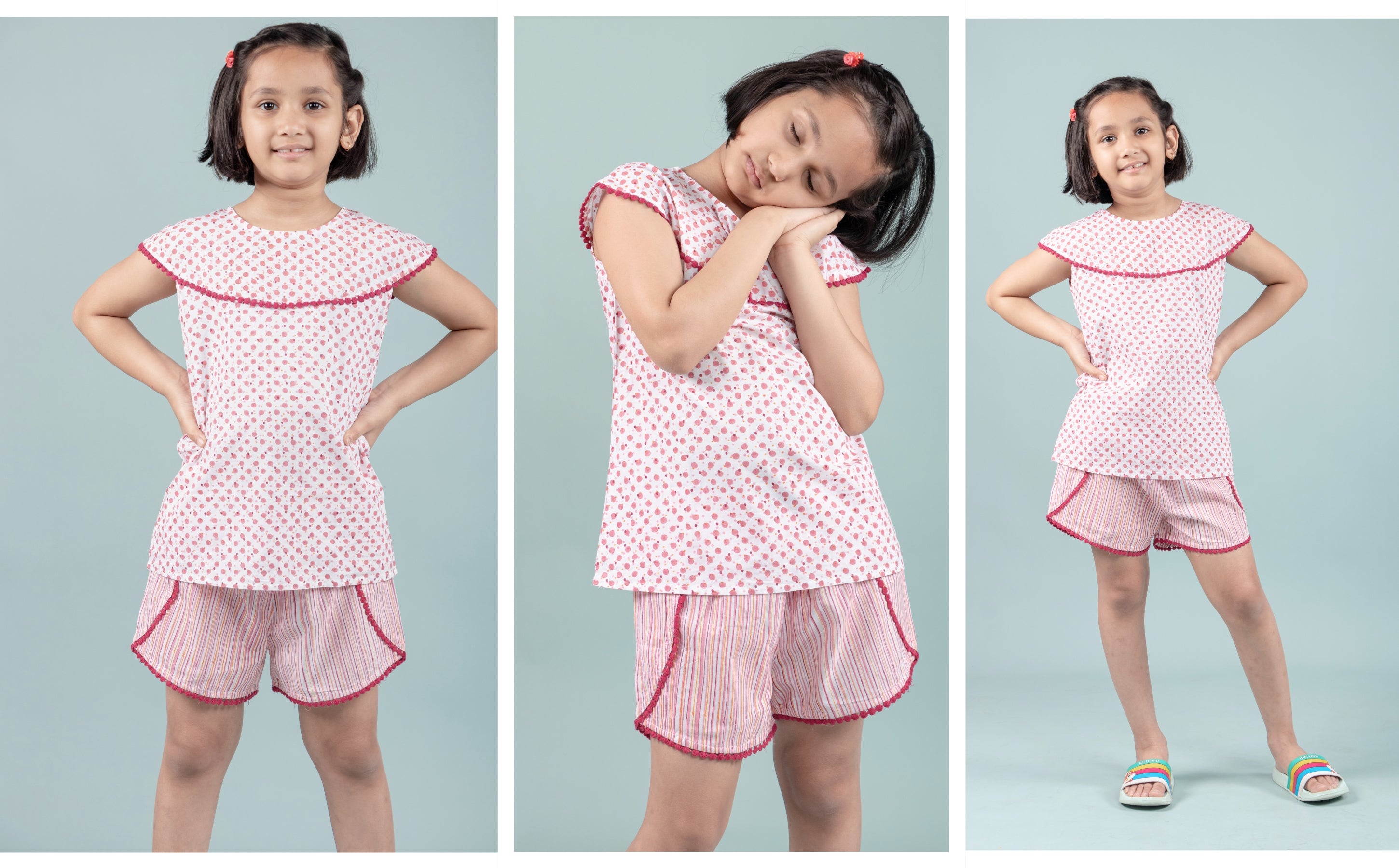 Each piece is handcrafted kids nightwear using age-old techniques passed down through generations. Skilled artisans print by hand, ensuring each outfit is unique. This block-printed finish adds cultural richness to the design. It makes your child’s outfit special and meaningful. Support local craftsmanship while dressing your child in wearable art.