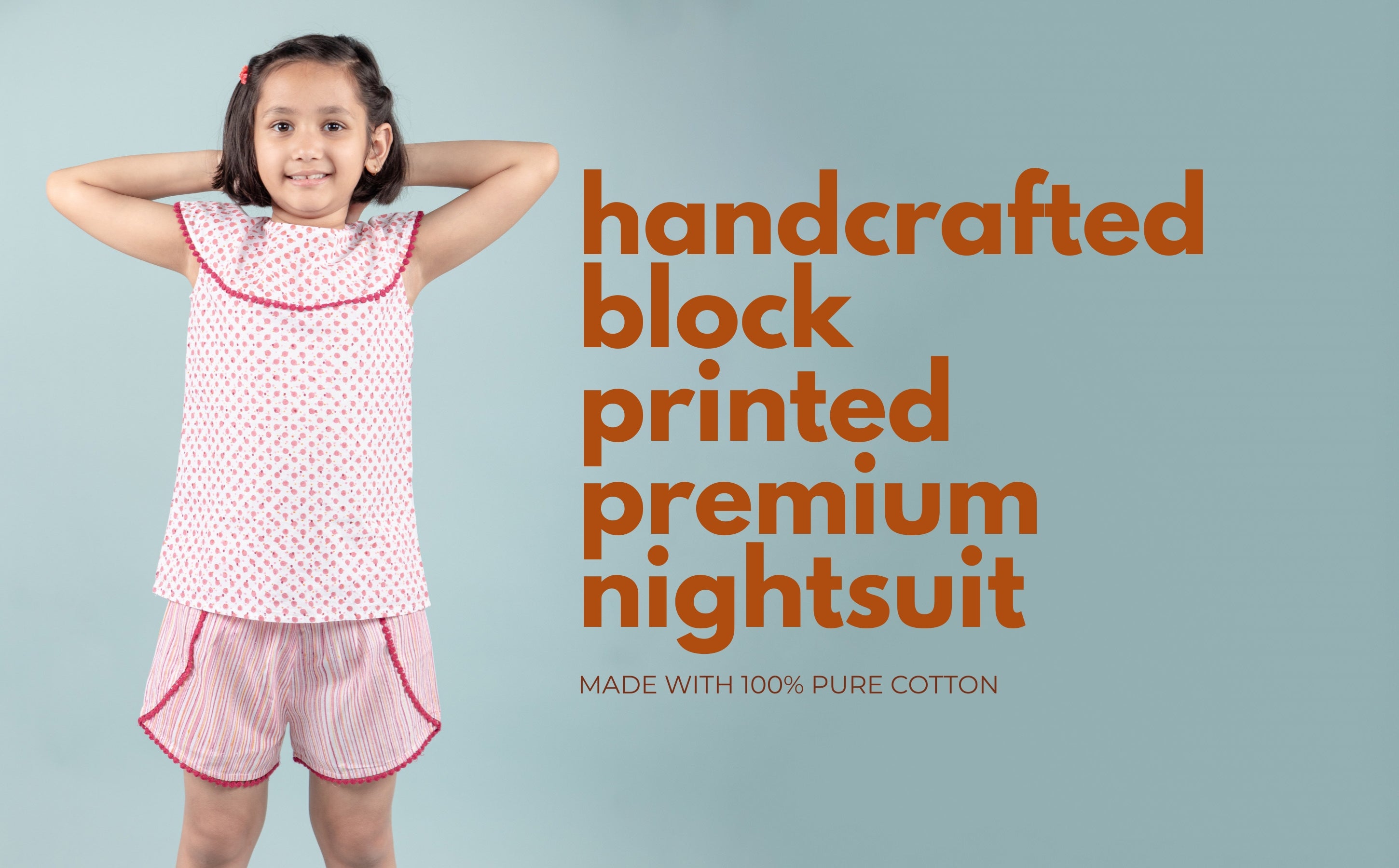 Handcrafted Kids Block Printed Nightdress for Girls – Pure Cotton Summer Sleepwear Set