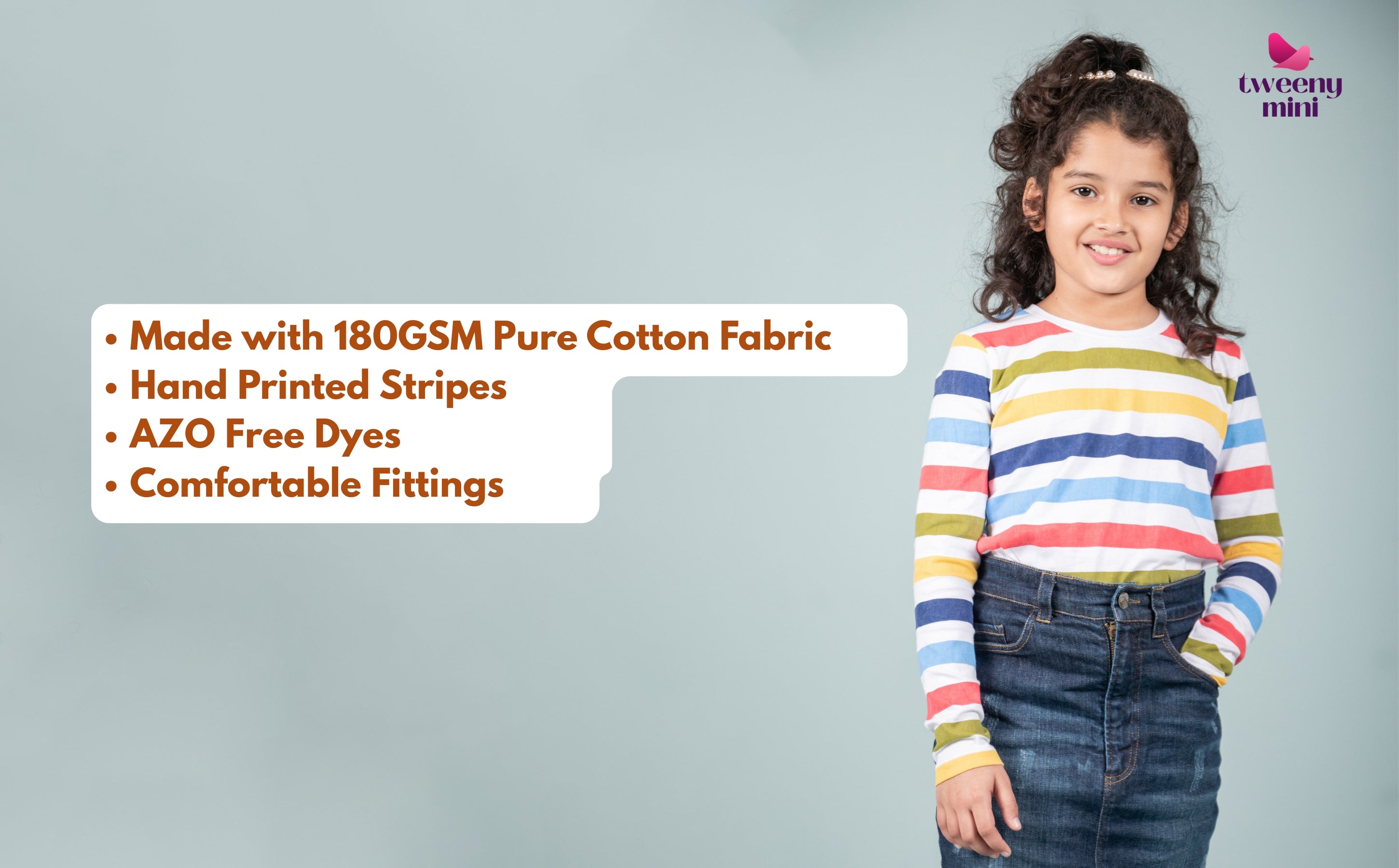Each tee is designed with handcrafted multi-color stripes that bring vibrance and originality to the outfit. The artisanal hand-block print adds charm while keeping the design fresh and expressive—perfect for girls who love color and creativity.