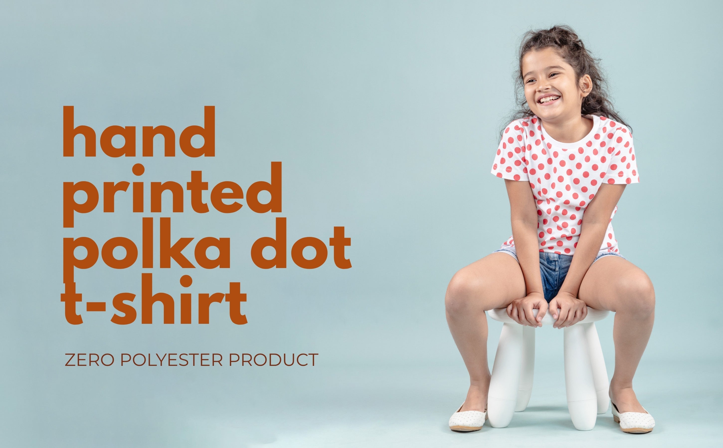 A perfect blend of softness, breathability, and handcrafted charm, this half sleeve t-shirt is designed for young girls who love comfort as much as colour. Made from premium pure cotton and decorated with cheerful hand-printed polka dots, it is a must-have wardrobe essential for the summer season. Every detail — from the airy sleeves to the artisan print — is thoughtfully crafted for all-day ease, movement, and style.