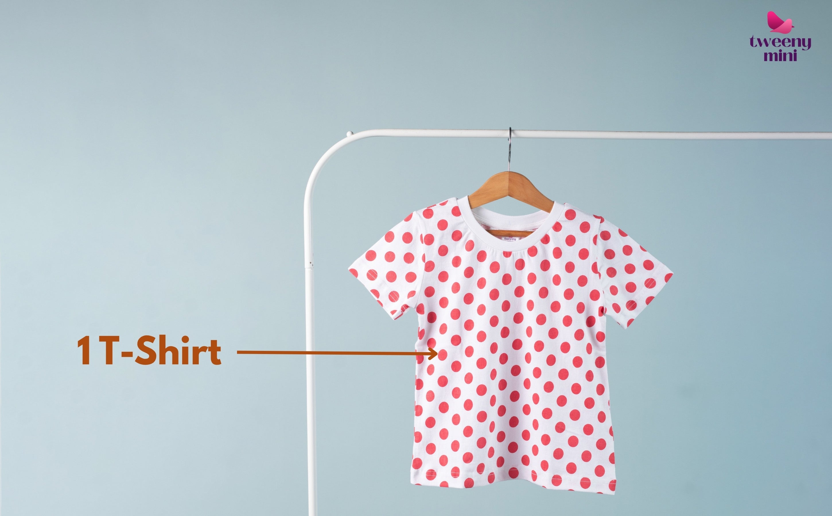 The bright red base adds a bold splash of colour, while the dotted print keeps things fun and youthful. Whether she pairs it with denim shorts, a skirt, dungarees, or leggings, this tee instantly lifts her outfit with its lively vibe.