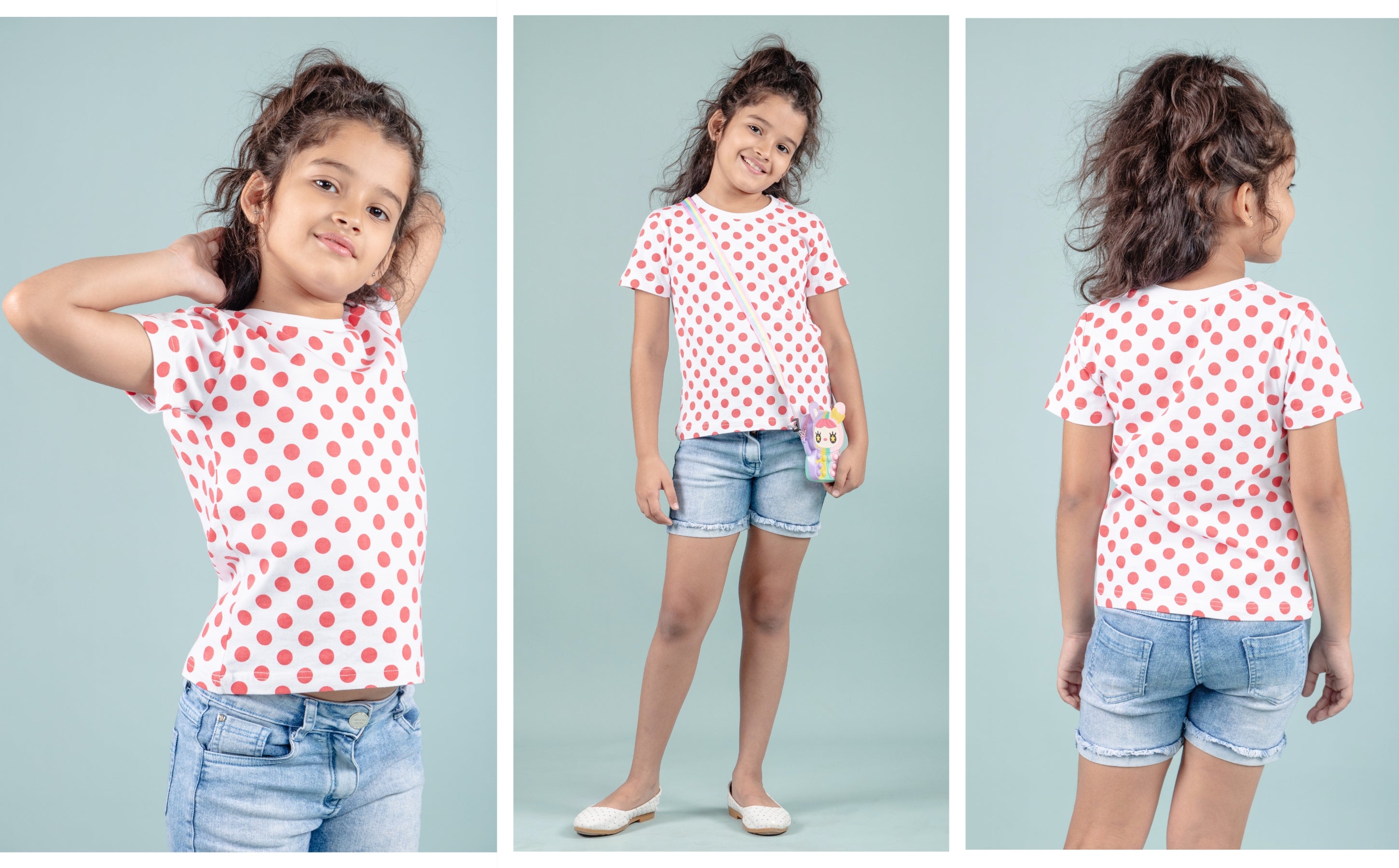 Style meets practicality with this tee. The red colour makes it eye-catching, while the polka dots bring in a playful element — perfect for girls who enjoy cute, expressive clothing. Whether for daily wear or a special occasion, this top is versatile enough to fit every mood and moment.