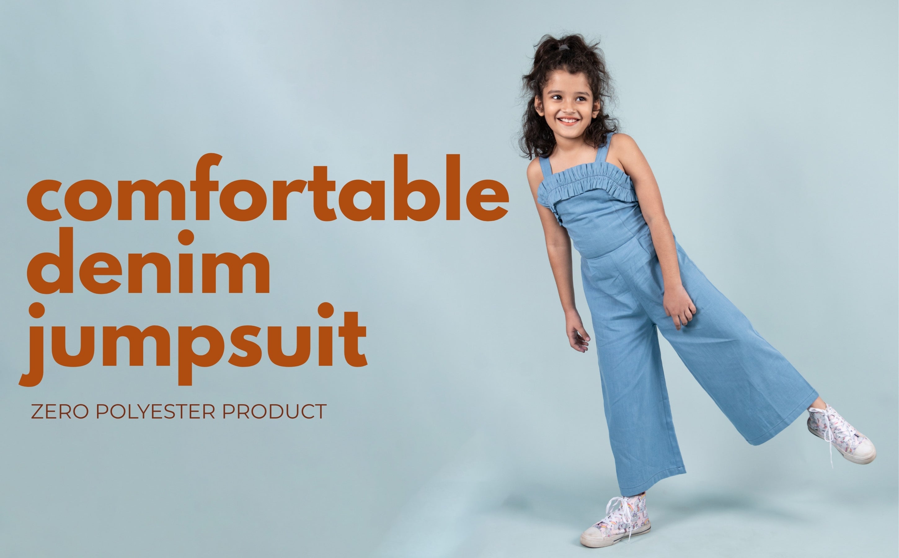 Because it’s more than just a piece of clothing—it’s a versatile, all-in-one comfortable denim jumpsuit for summer kidswear that effortlessly combines style, comfort, and practicality. This premium denim jumpsuit for teenage girlsis thoughtfully designed to suit the dynamic lifestyle of young girls, whether they’re heading out for a fun day at the park, enjoying a family gathering, or simply lounging at home. Made with breathable, durable fabric and adorned with adorable frilled details, it offers both charm and long-lasting wear. The fit is relaxed yet flattering, giving her the freedom to move, play, and express herself with ease. From its trendy look to its functional design, every aspect of this jumpsuit is crafted with care. It’s easy to wear, easy to style, and easy to love. Give your child a reason to smile and feel confident every day with an outfit that feels just as good as it looks.