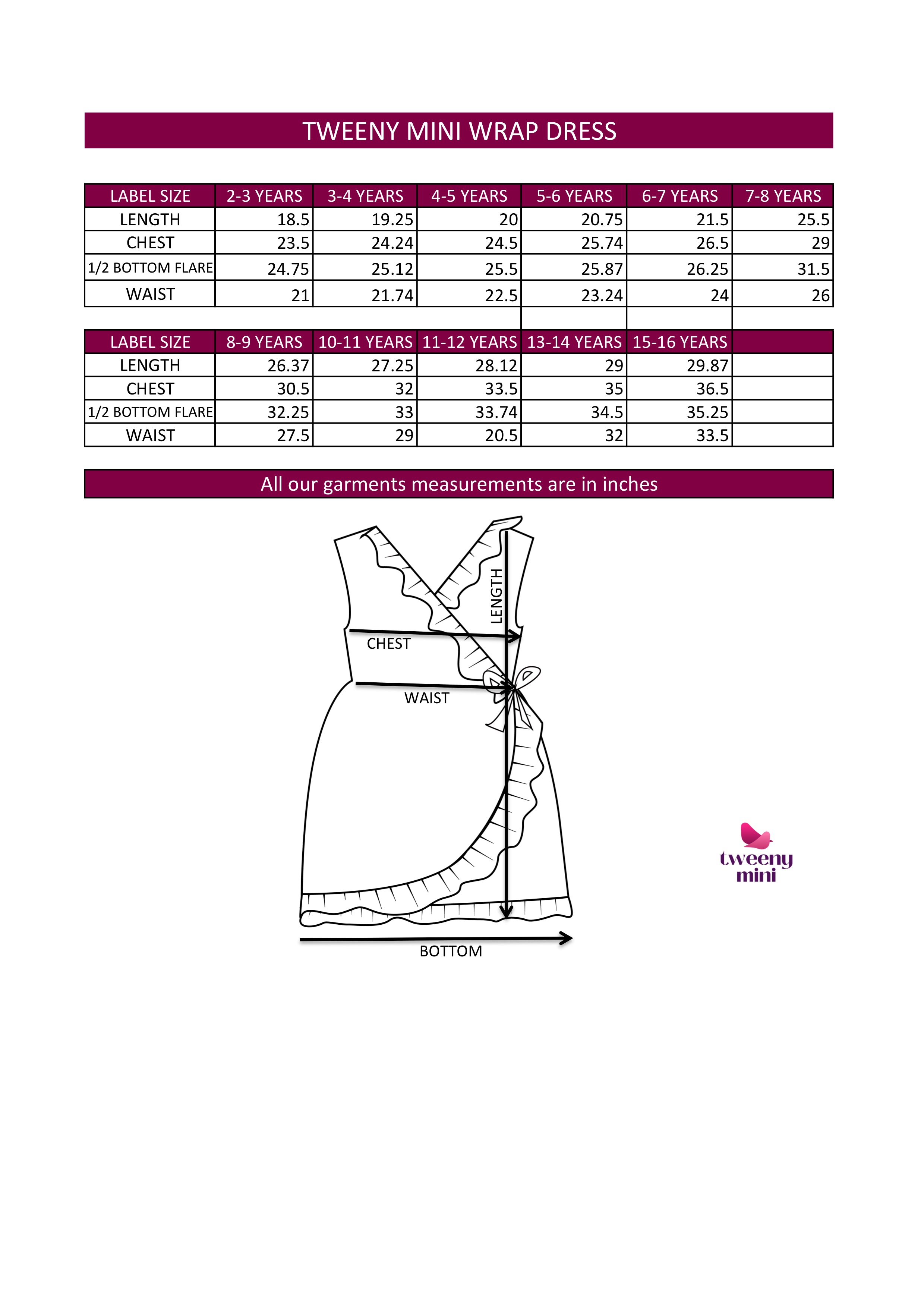 The dress is available in multiple size options to suit girls from early childhood to teenage years: