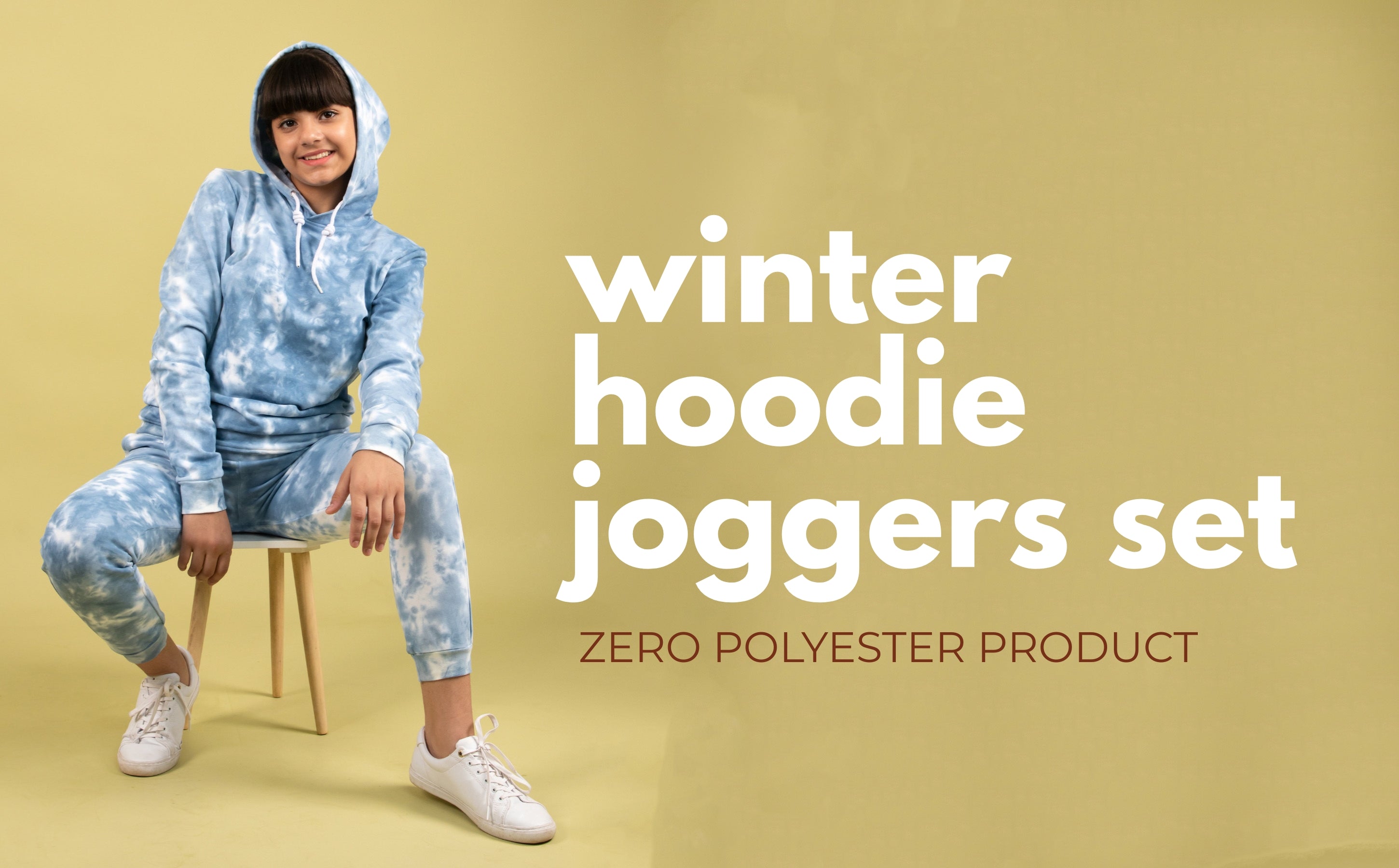 Trendy Tie-Dye Hoodie Jogger Set for Girls – Pure Cotton Winter Comfort
