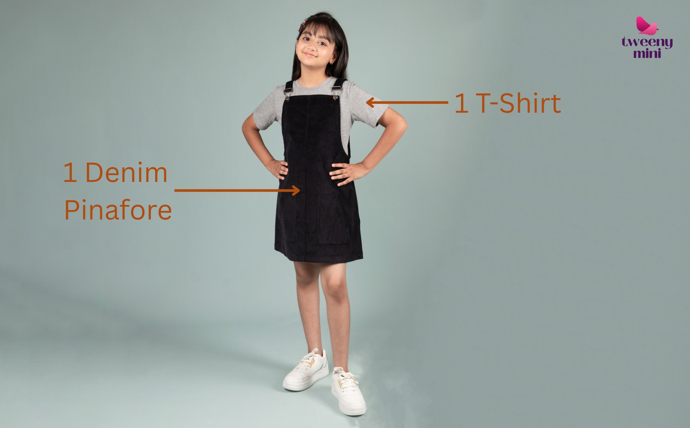 Pair the pinafore with the cotton T-shirt for a breezy, active outfit. Add sandals or sneakers for a relaxed look.