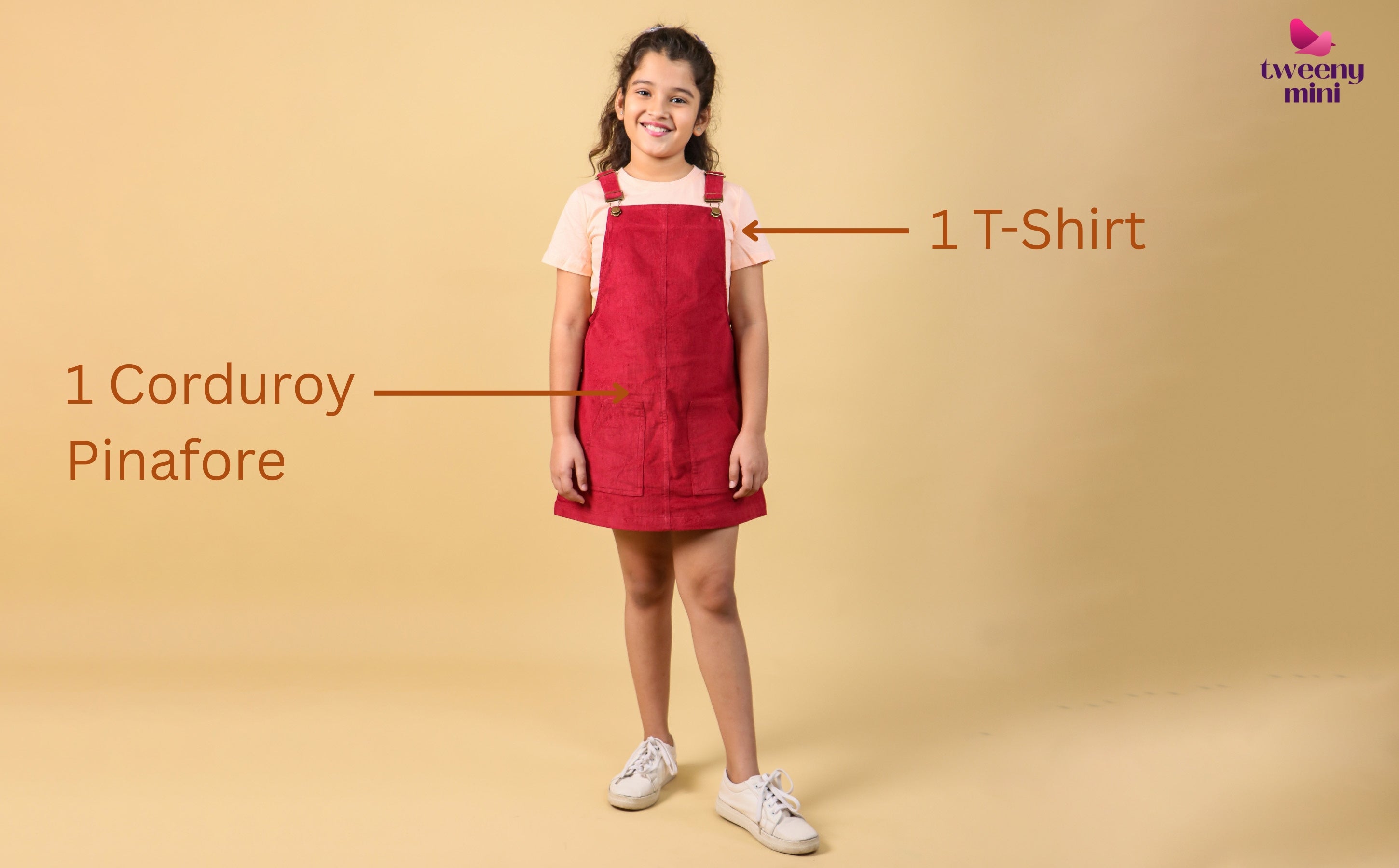 Introduce effortless charm into your child’s wardrobe with this beautifully crafted pinafore dungaree dress set, designed for girls who love playful style, easy movement, and all-day comfort. Created with premium corduroy and paired with a soft pure-cotton T-shirt, this outfit blends durability, fashion, and functionality in a way that suits toddlers, kids, and teens alike.