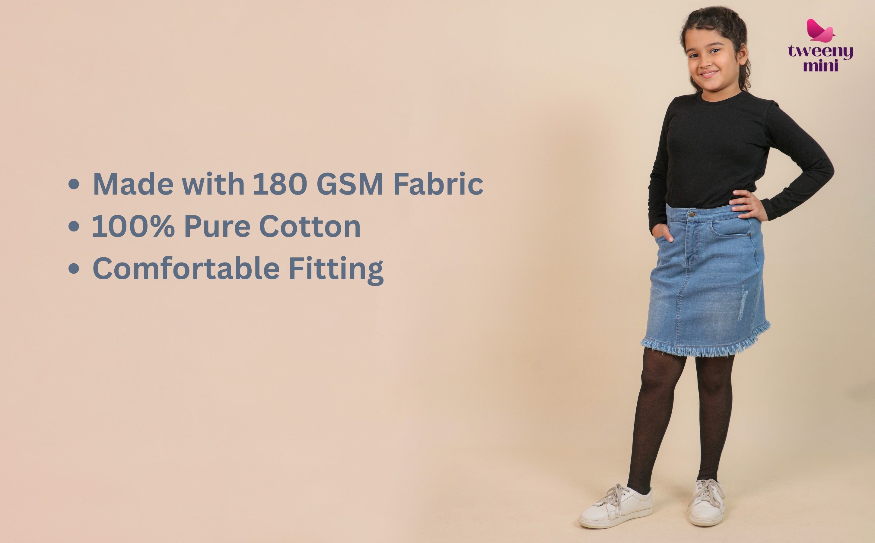 Pure Cotton Full Sleeve Top for Girls Kids (Black)