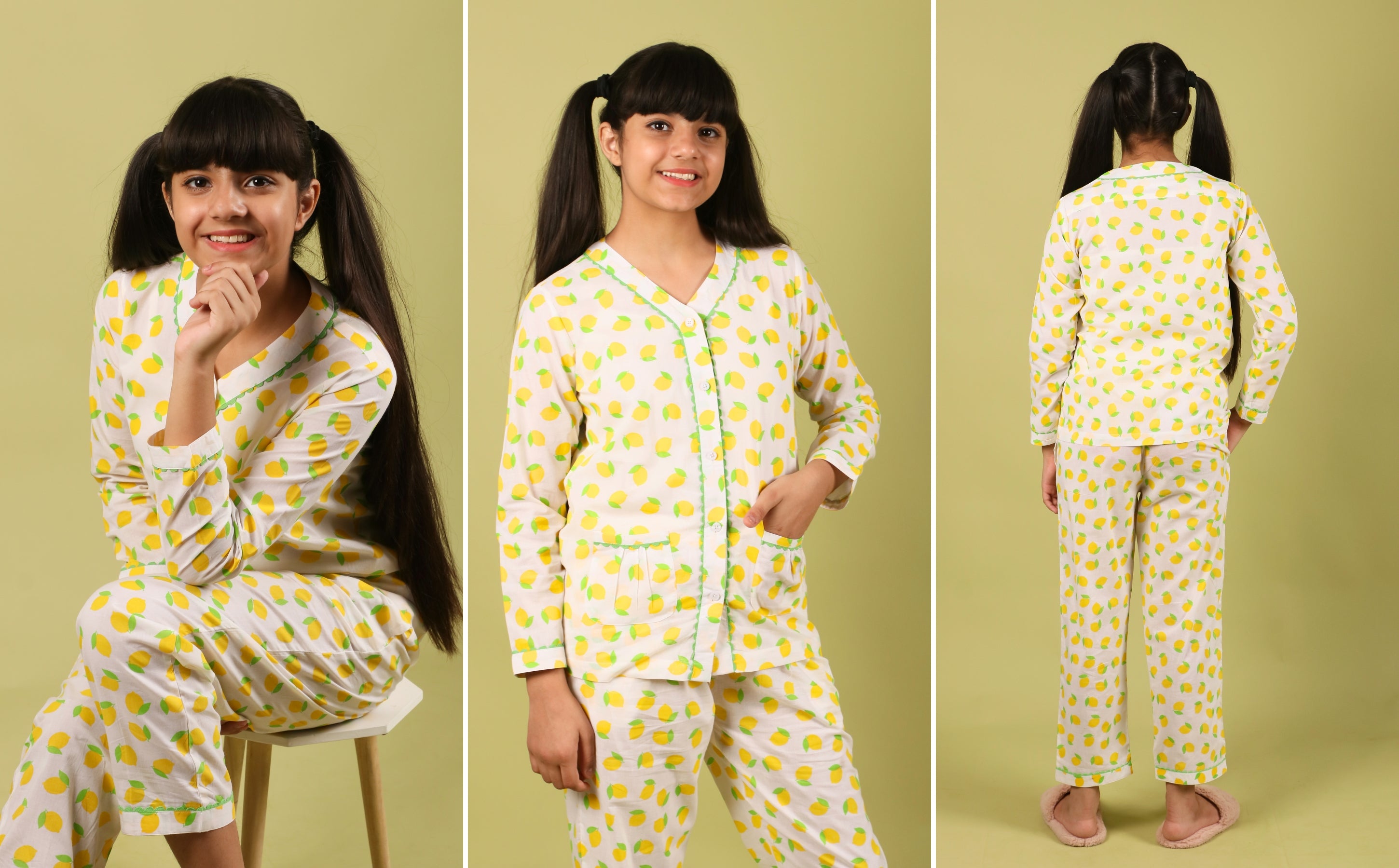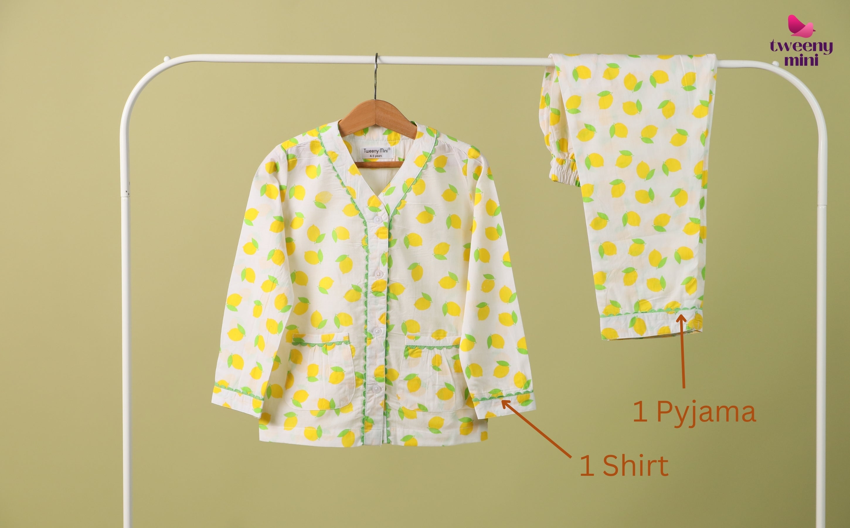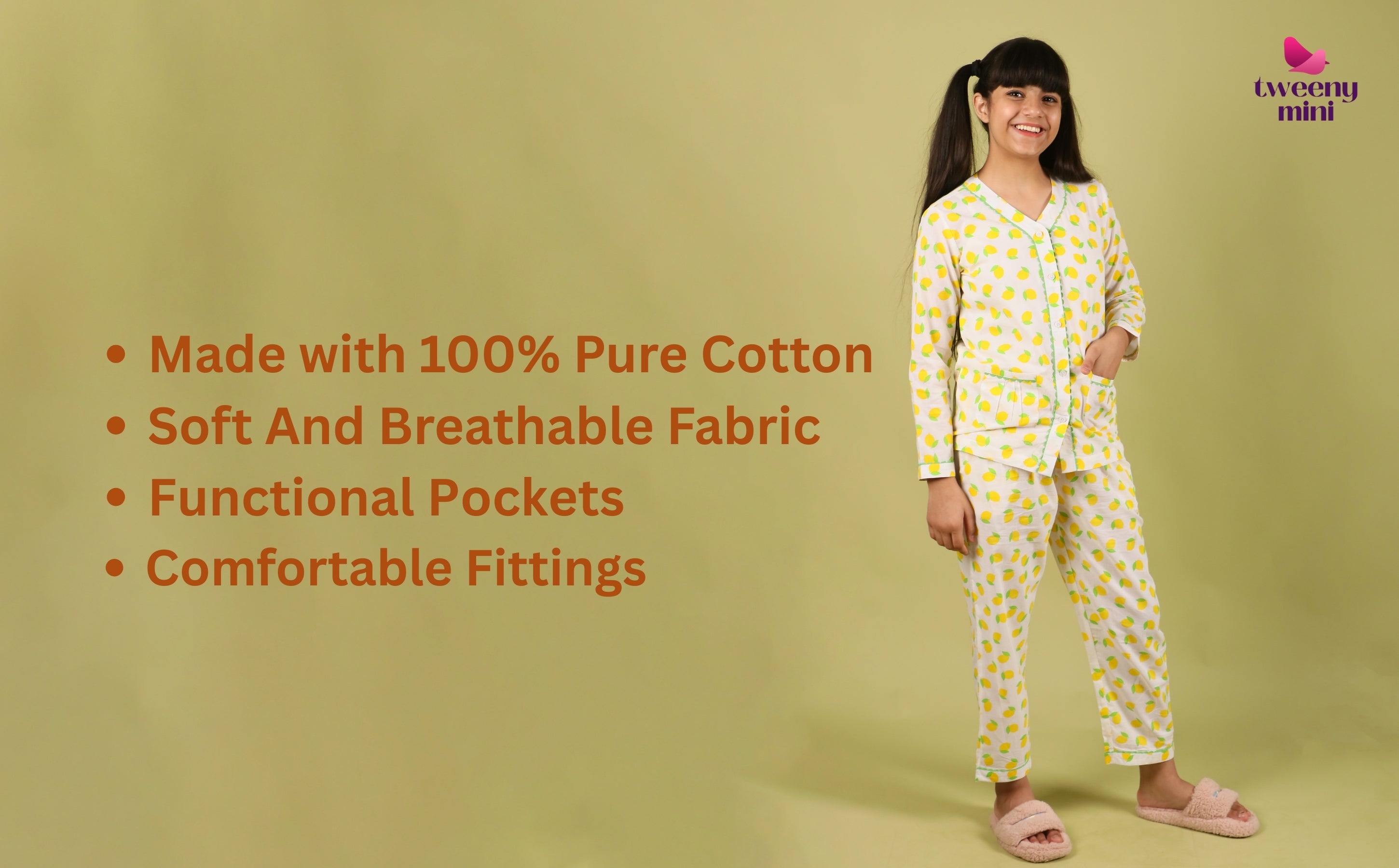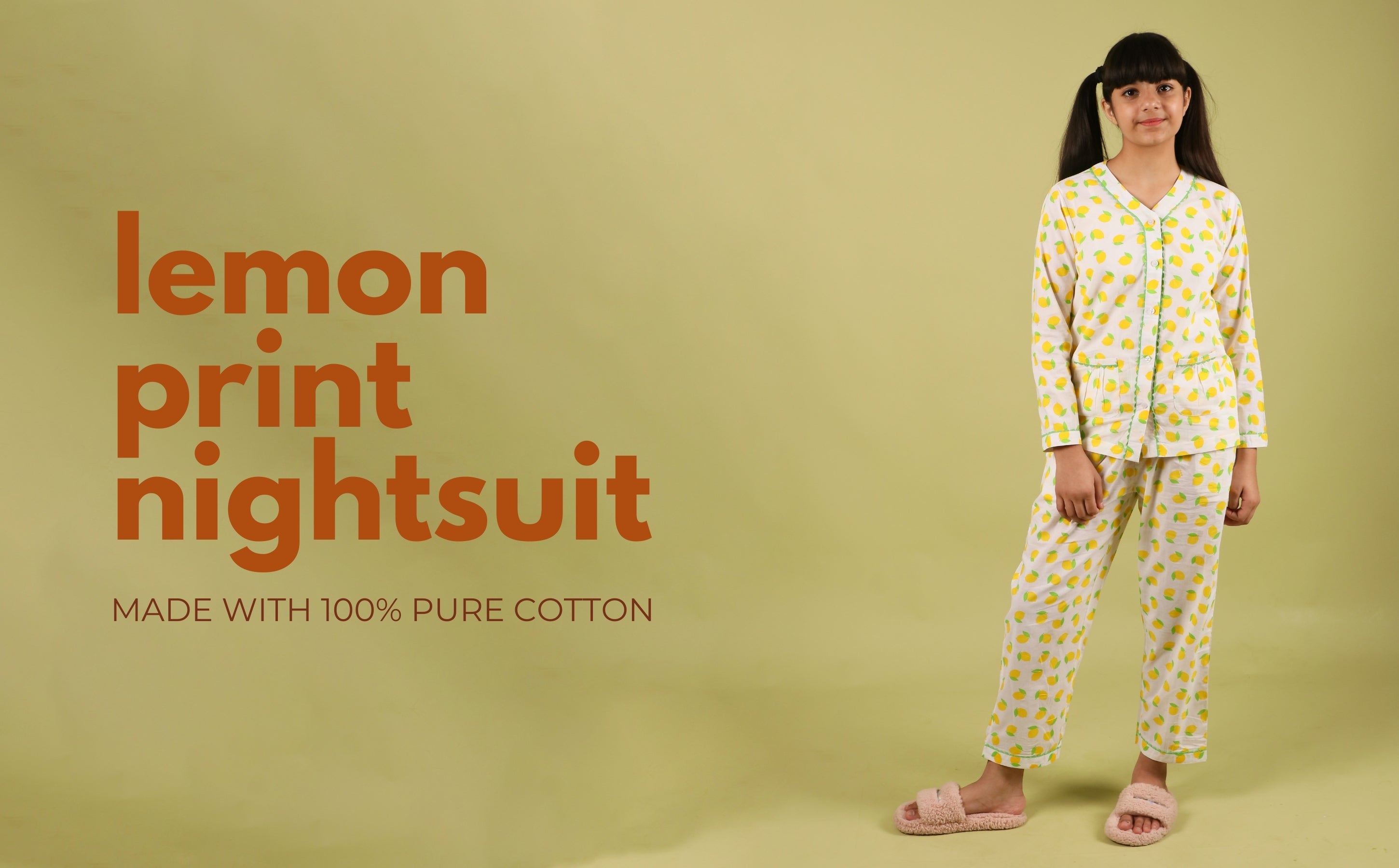 Lemon Printed Pure Cotton Girls Nightsuit – Soft, Breathable & Everyday Comfortable