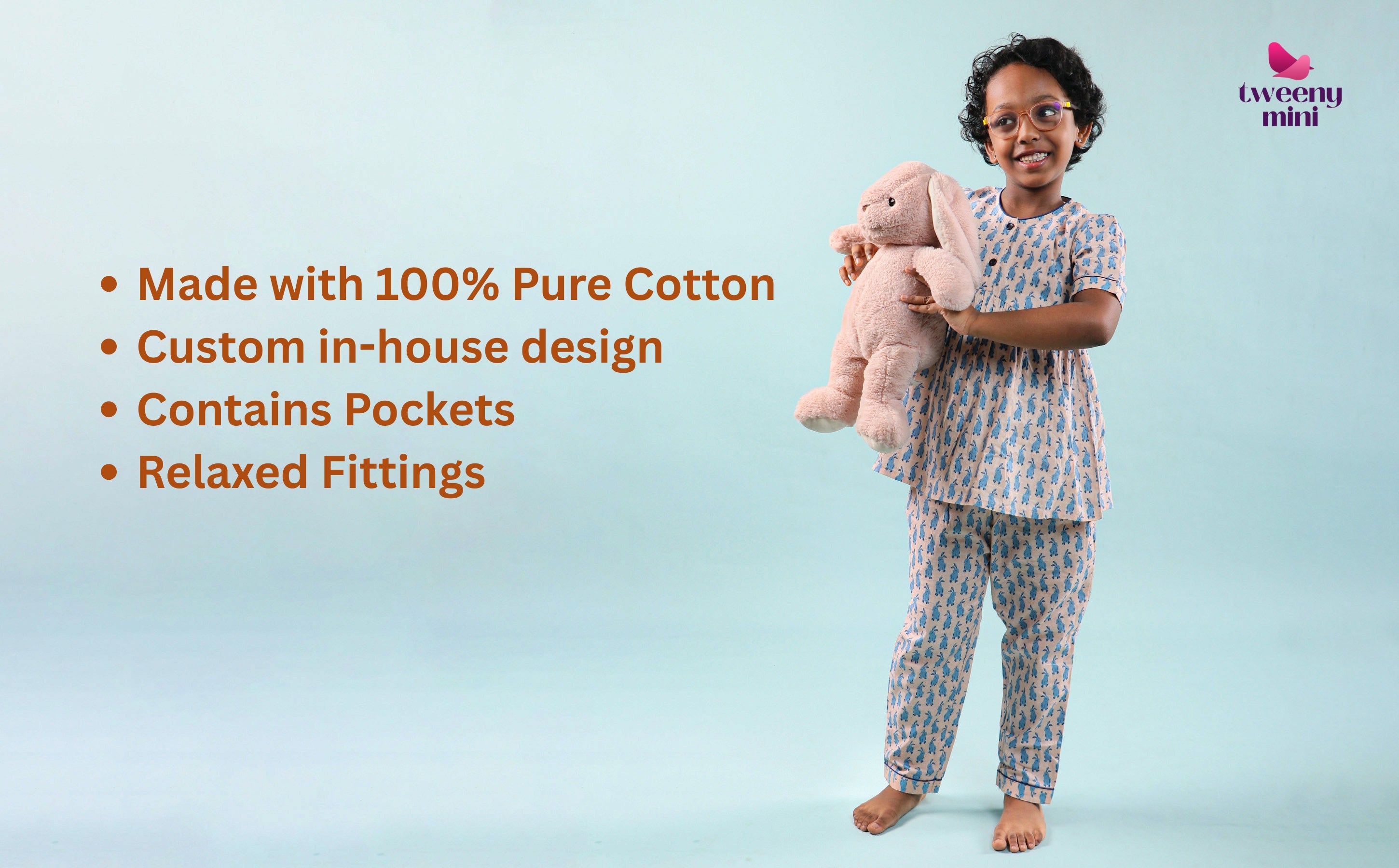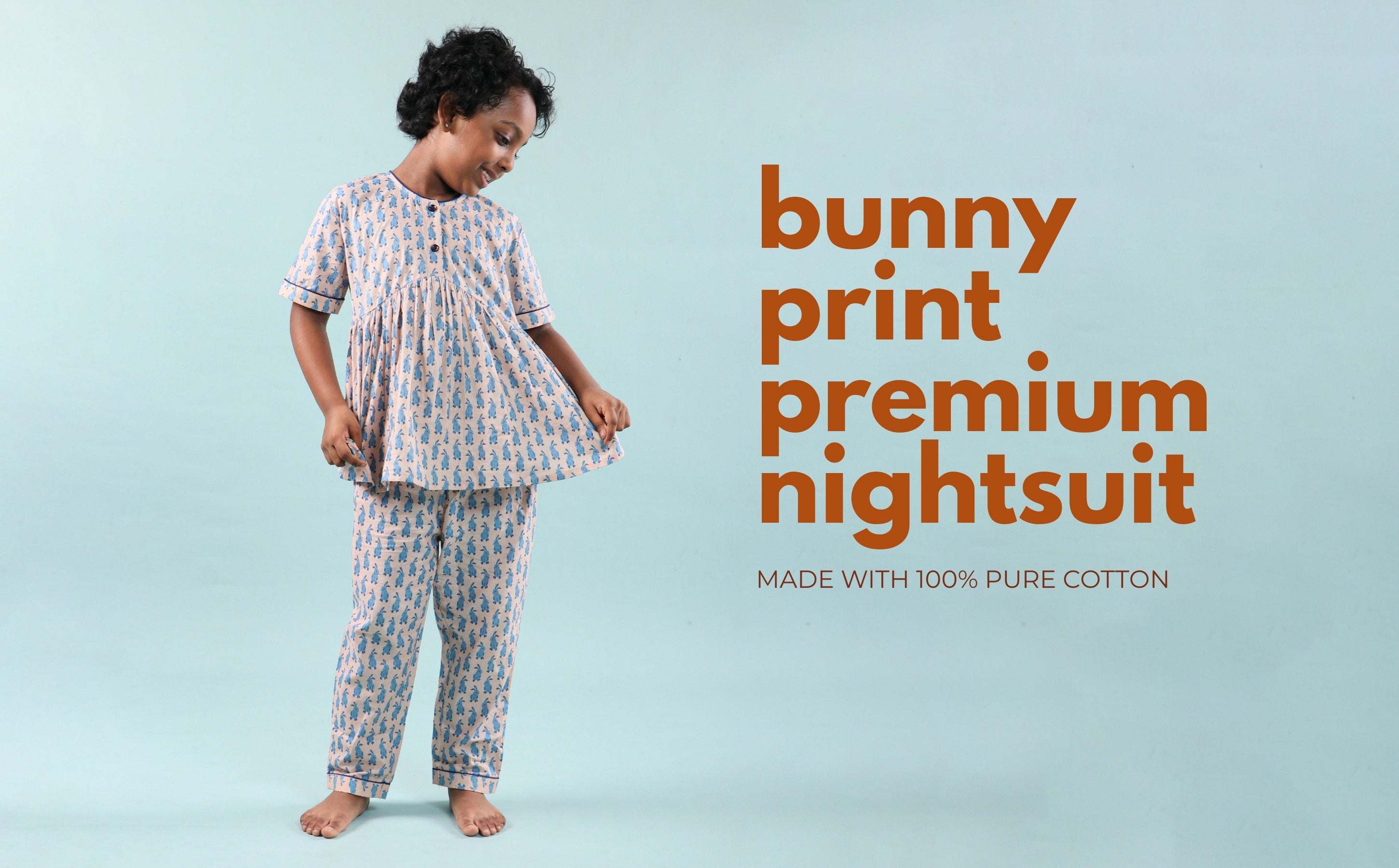 Proper care keeps the bunny print bright and the fabric soft, making this soft cotton nightwear for kids last season after season.