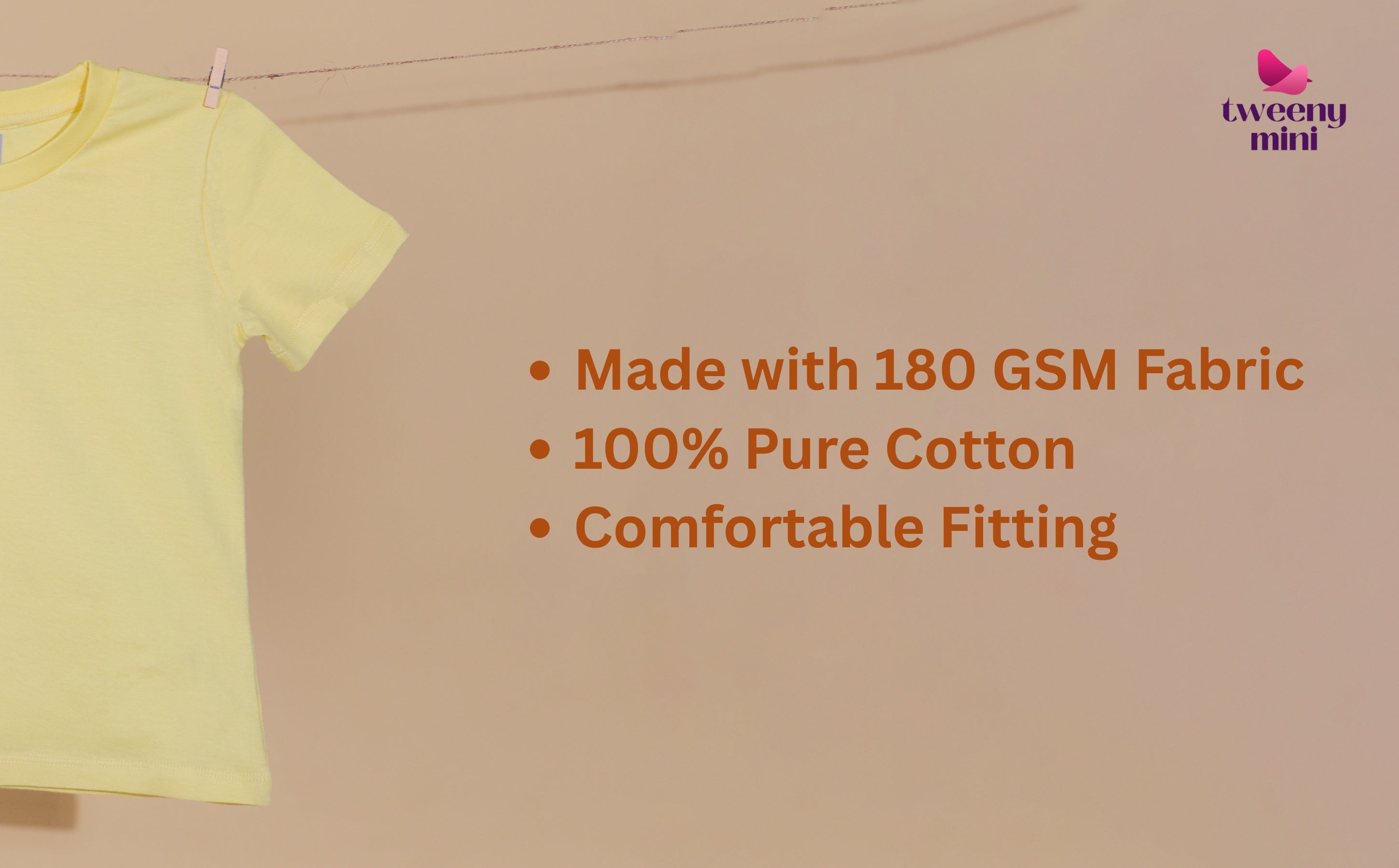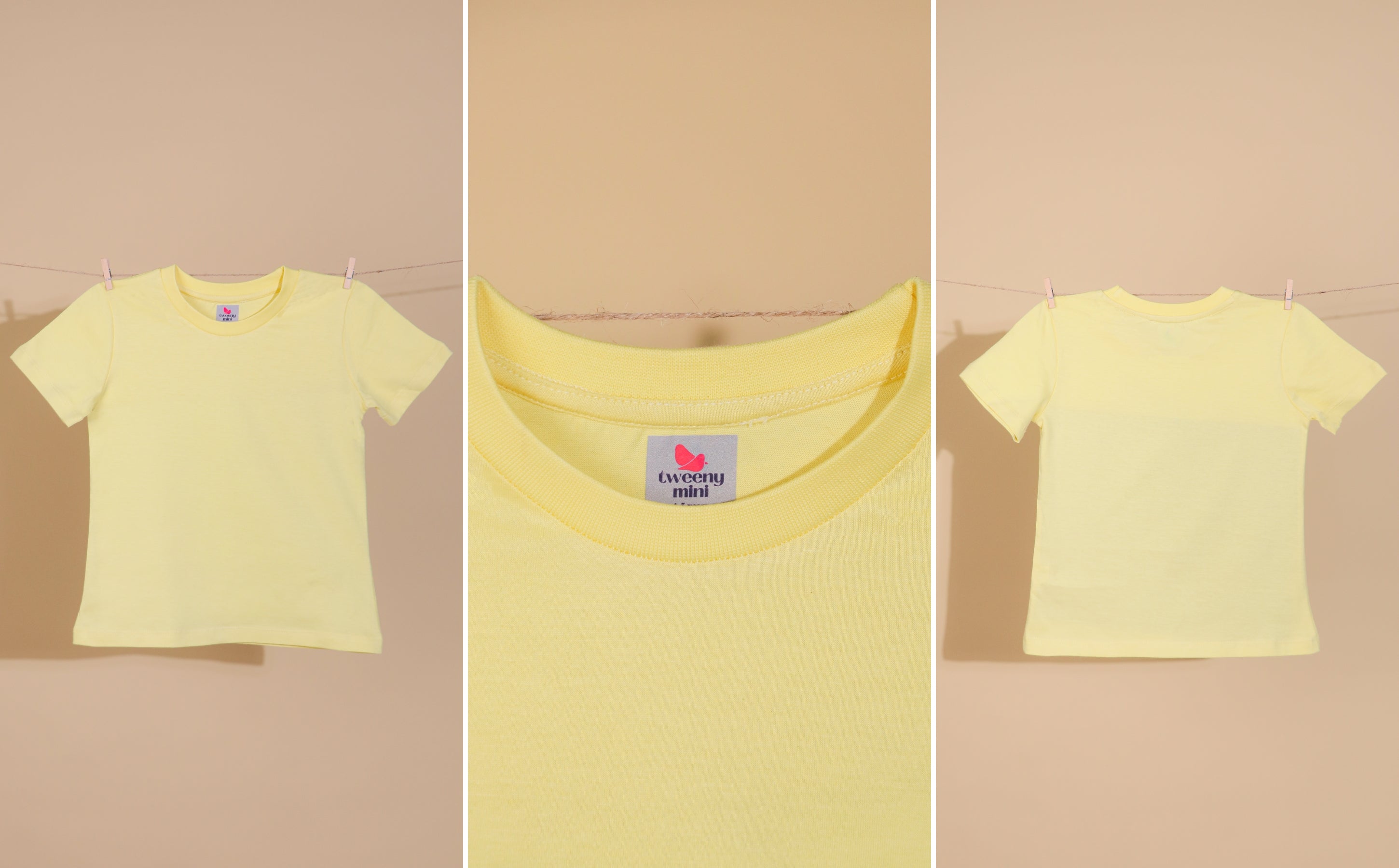 Comfortable clothing is one of the most important essentials in every child’s wardrobe. Kids need outfits that allow them to move freely, feel comfortable throughout the day, and still look cheerful and stylish. The t-shirt for girls in this soft lemon yellow shade is thoughtfully designed to deliver all of these qualities in one simple everyday garment.