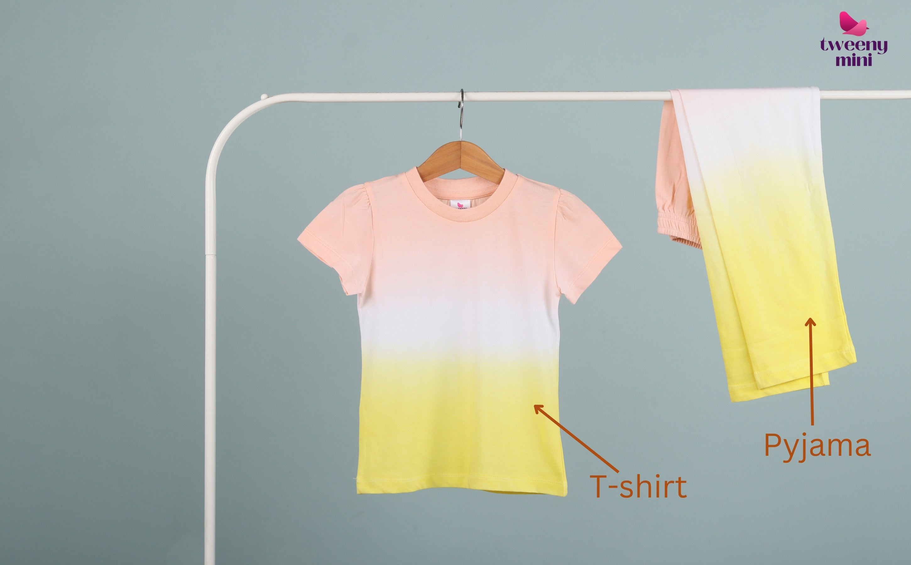 Ombre Tie-Dye Girls Nightsuit for Kids – Pyjama Set with Top (Yellow Peach)