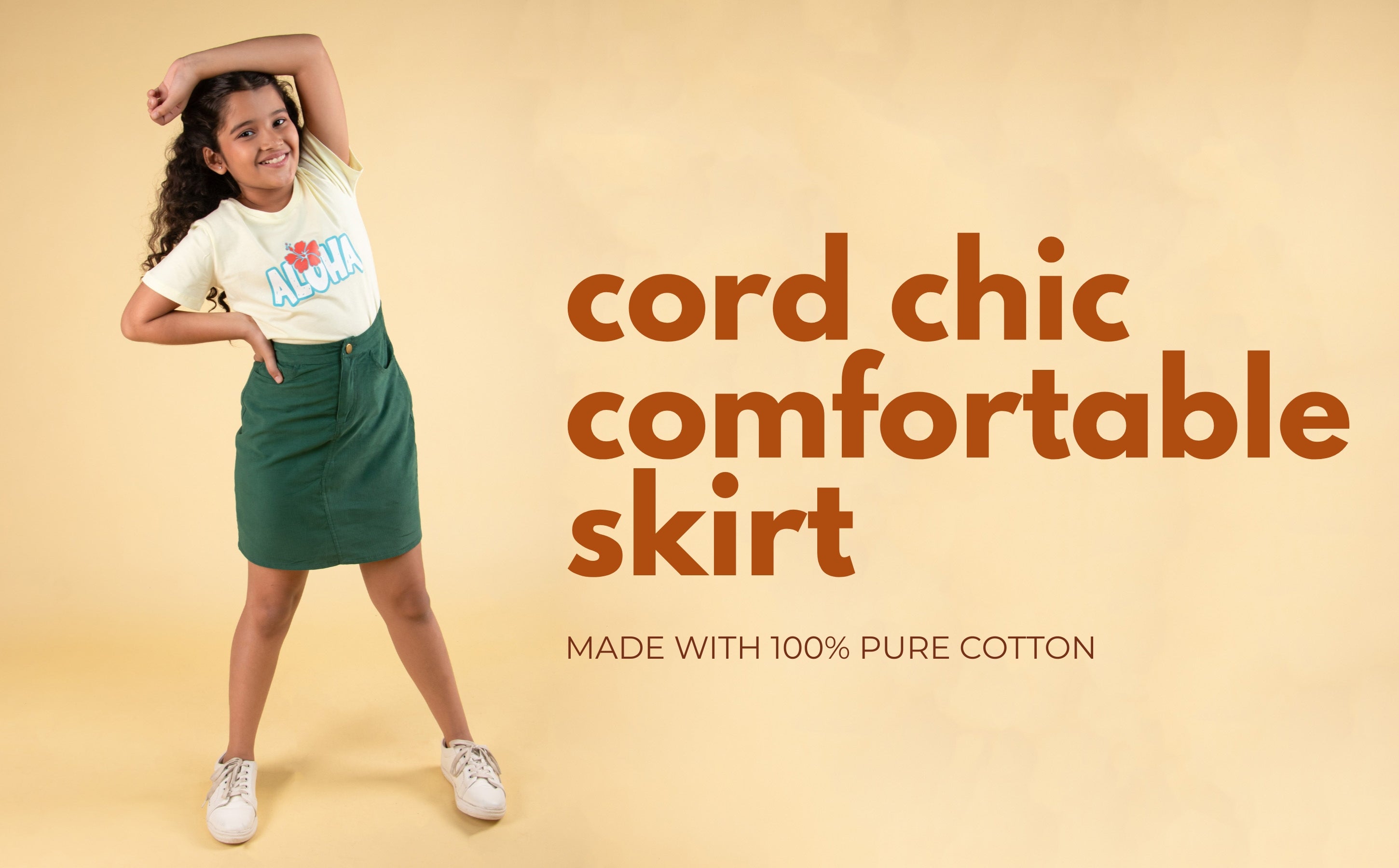 🌿 Superior Comfort with Pure Cotton Corduroy Skirt and Soft Tee