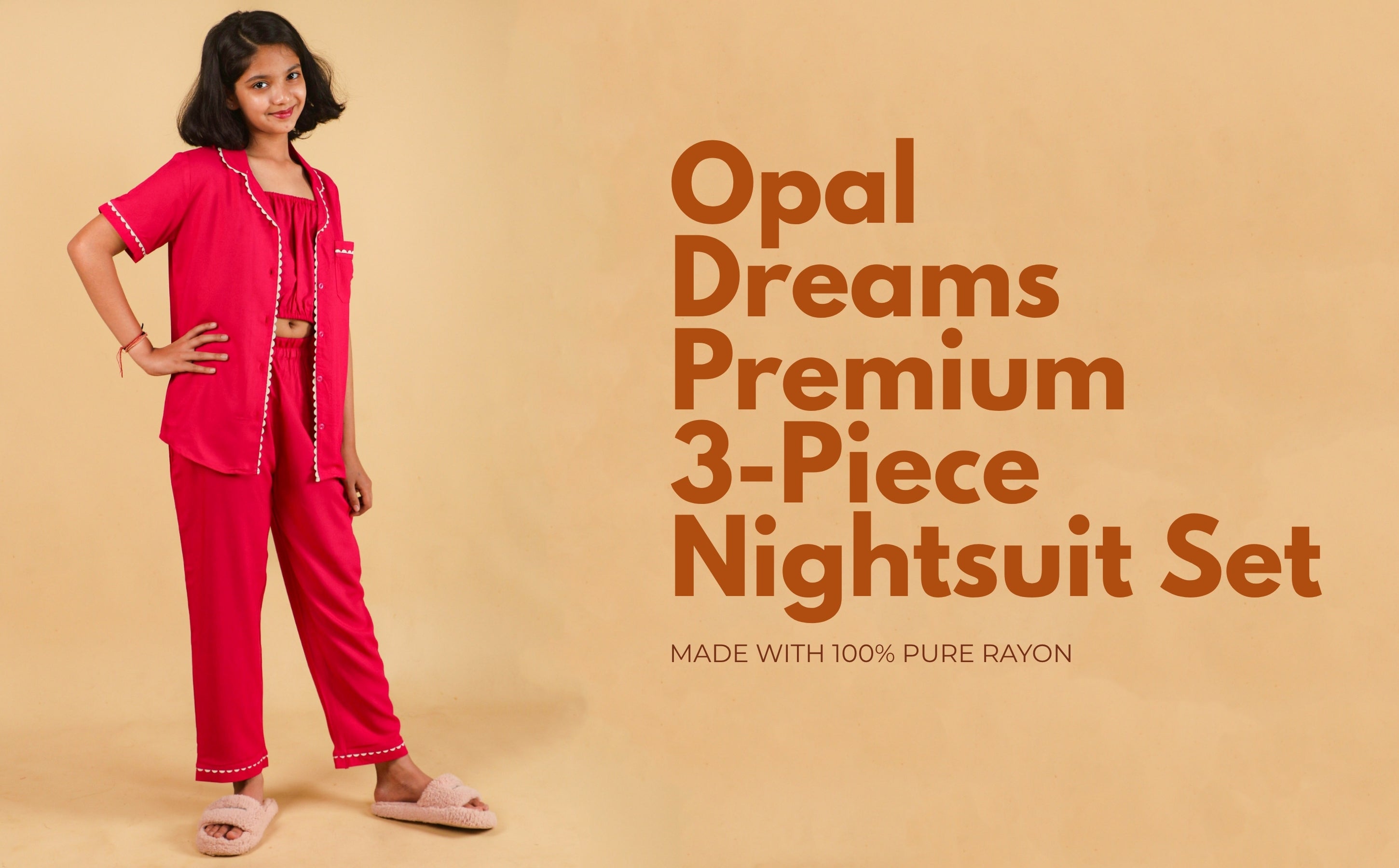 Opal Dreams – The Best Nightsuit for Girls in Soft Virtual Pink (3-Piece Premium Set)