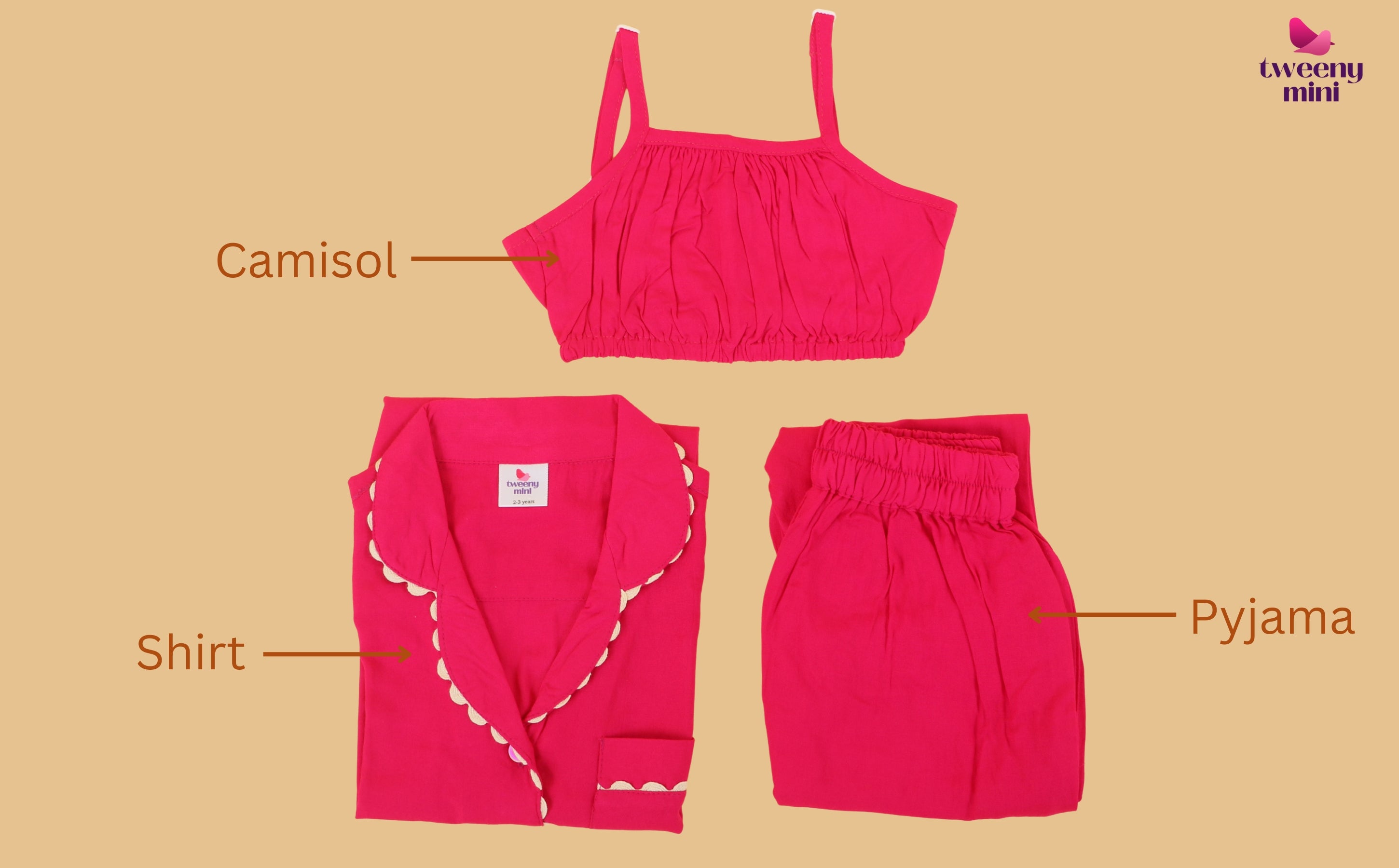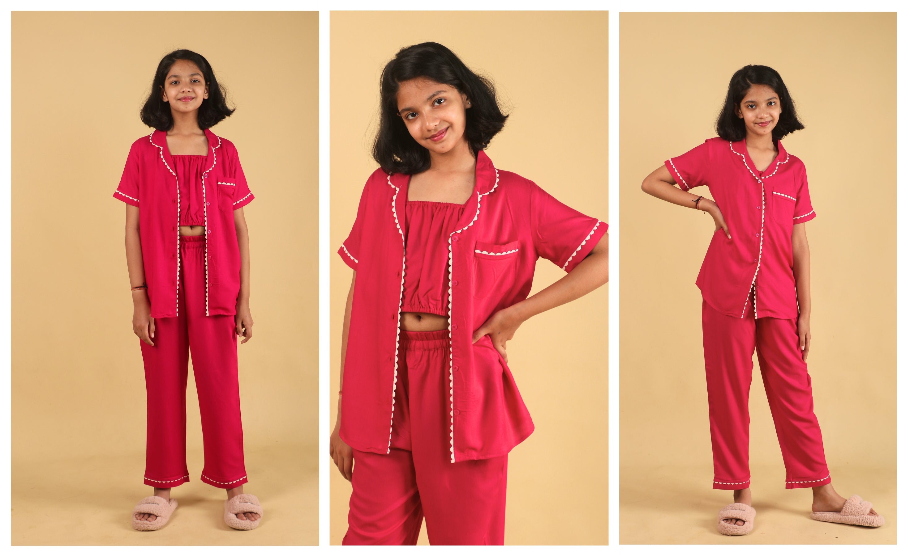 Give your child the sleepwear she deserves with a thoughtfully designed, beautifully crafted outfit that blends comfort, breathability, and timeless style. The best nightsuit for girls is not just about fashion—it’s about helping your child sleep better, relax easier, and feel good every time she puts it on. This 3-piece rayon sleepwear set in Virtual Pink is created especially for warm nights, cozy evenings, weekend lounging, and every moment in between.