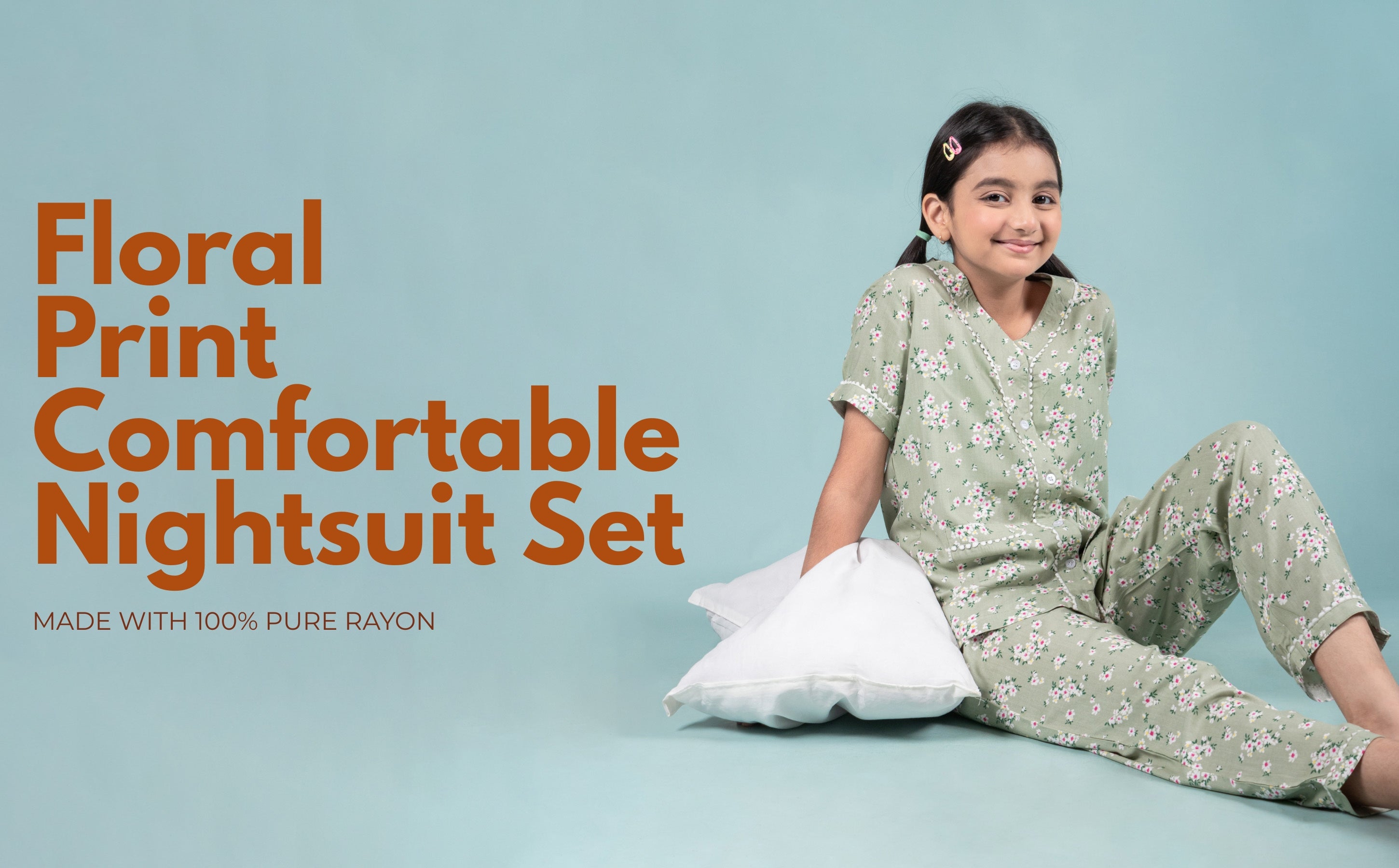 This balance of comfort and charm is what makes the floral nightwear set for girls a bedtime favourite.
