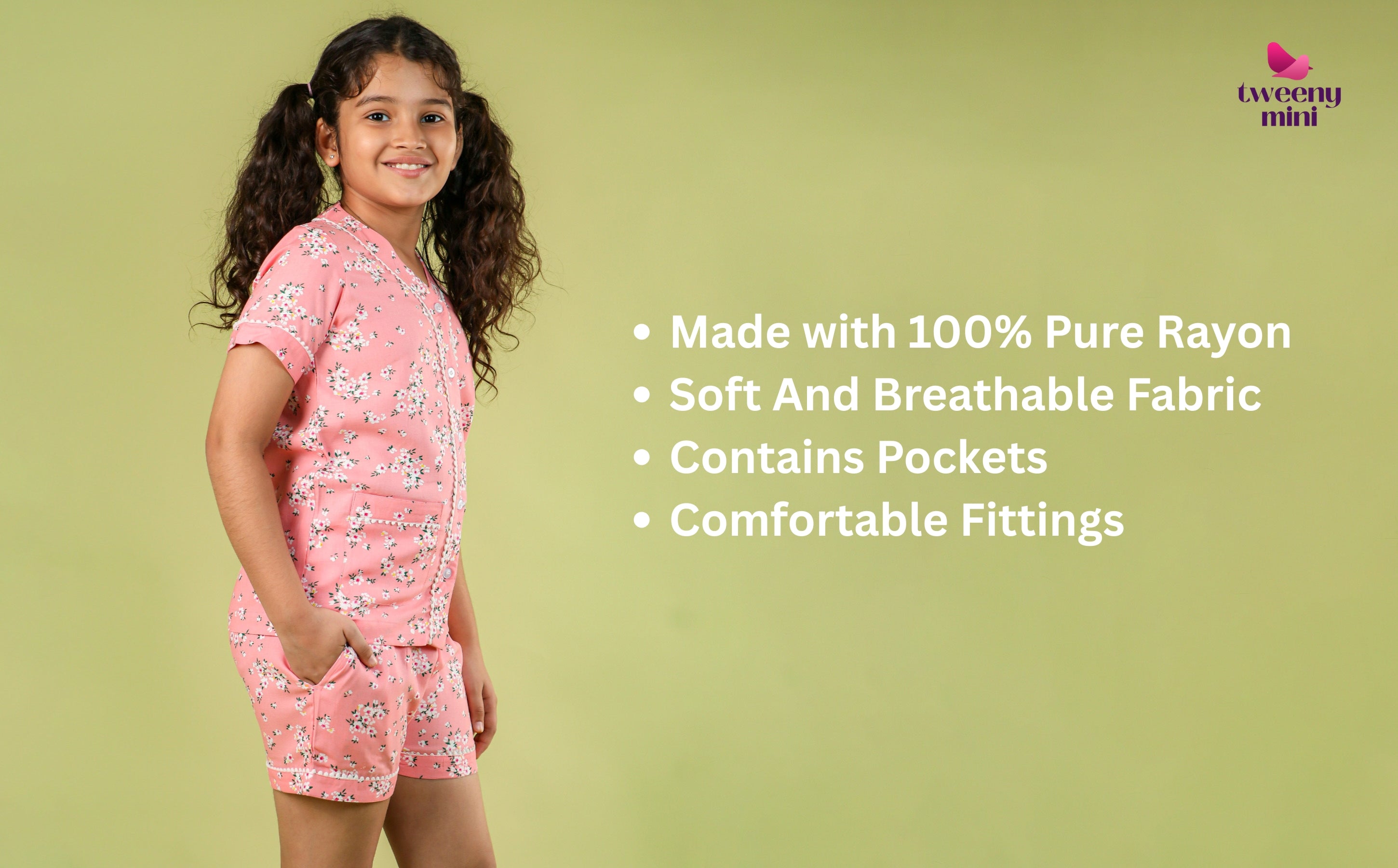 ✔️ All-Season Essential: This peach-toned night suit for girls kids works effortlessly through summer and beyond.